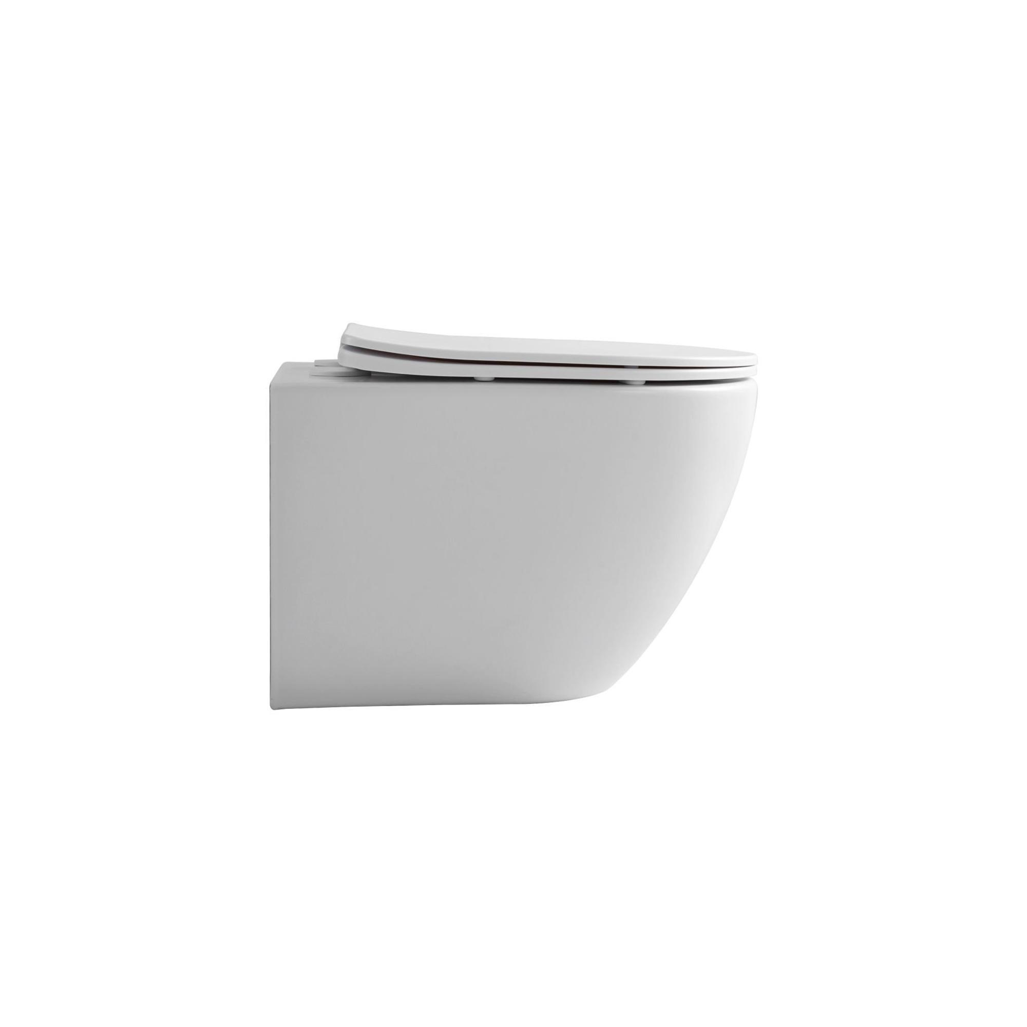 Aloni Pro Toilet suspendu - 36x49x32cm - chasse tourbillonnante - sans rebord - avec abattant - fermeture douce - libération rapide - compact - blanc mat
