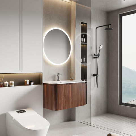 Ce meuble attire immédiatement l’attention grâce à sa finition élégante couleur châtaignier, qui ajoute chaleur et caractère à toute salle de bains. Les coins arrondis doux offrent un aspect moderne et accessible, tandis que le design plat et épuré crée une sensation de calme et d’ordre. Grâce aux poignées intégrées, le meuble conserve un look minimaliste sans compromettre la facilité d’utilisation. Il s’intègre donc parfaitement dans des salles de bains classiques comme contemporaines. Avec cet ensemble, vous donnez à votre salle de bains une mise à jour élégante qui dure des années et plaît toujours.