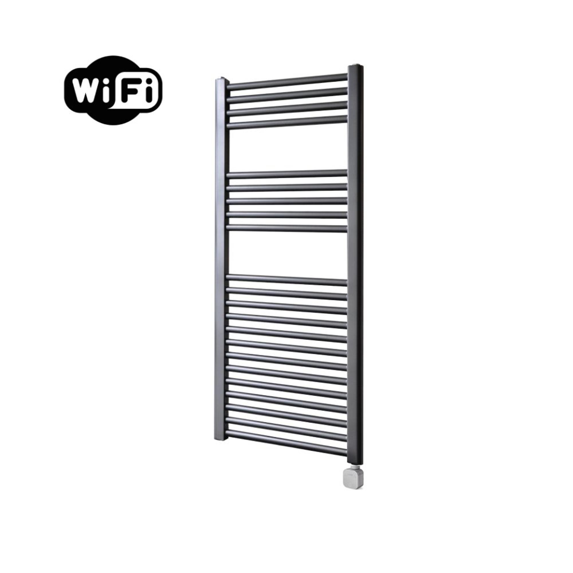 Sanicare HPW Radiateur électrique - 111,8x60cm - 730W - wifi - thermostat - argent - en bas à droite - gunmetal (anthracite)