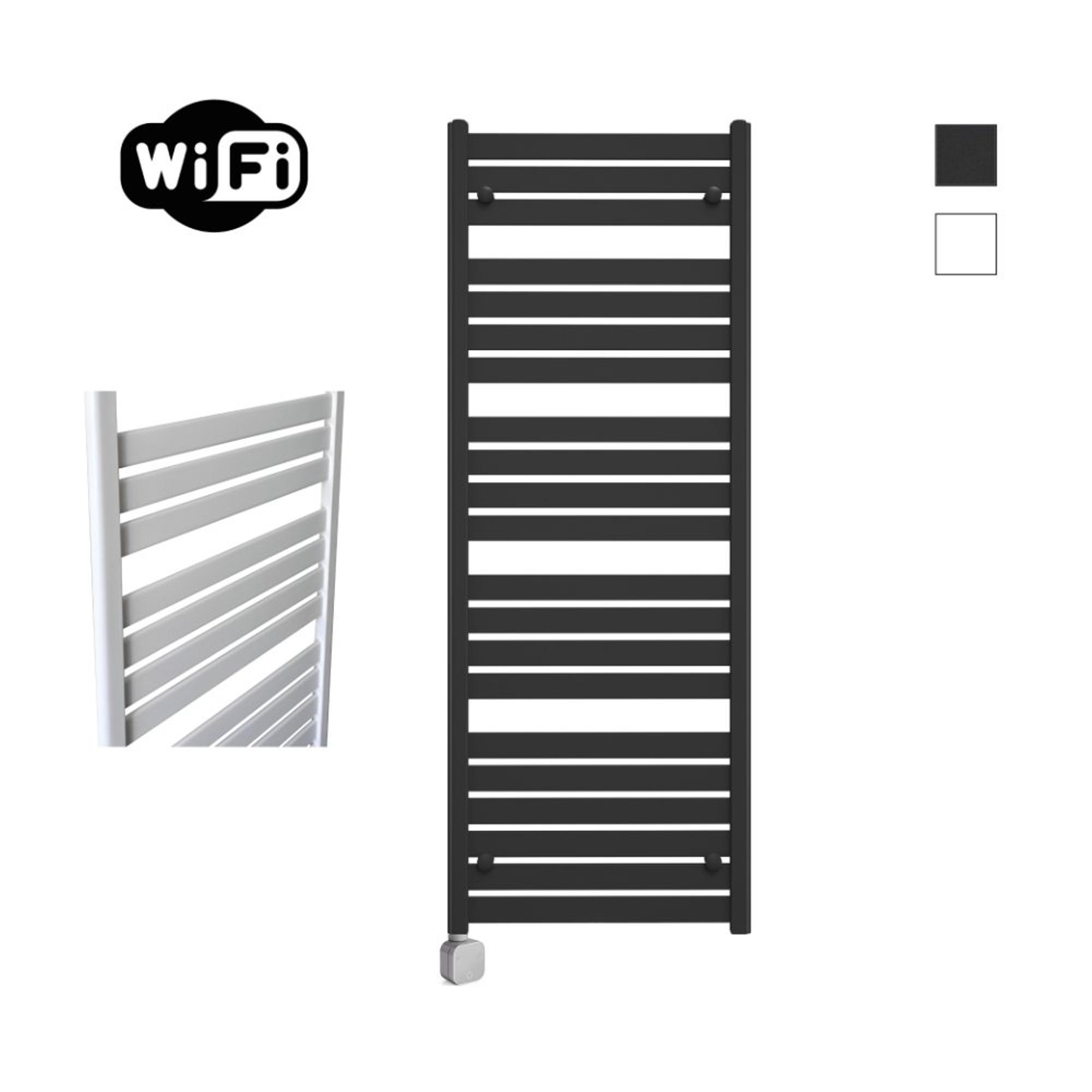Sanicare HPW - Moda Radiateur électrique - 160x60cm - 1159W - wifi - thermostat - argent - en bas à gauche - noir mat
