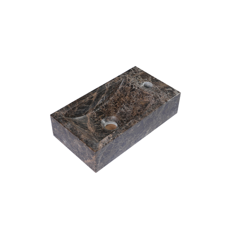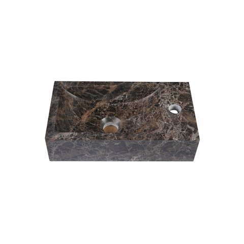 FugaFlow Efficiente Pietra Ensemble Fontaine - 40 × 22 × 10 cm - trou de robinet à droite - robinet de fontaine blanc mat - bonde d’évacuation - siphon abaissé - Dark Emporador