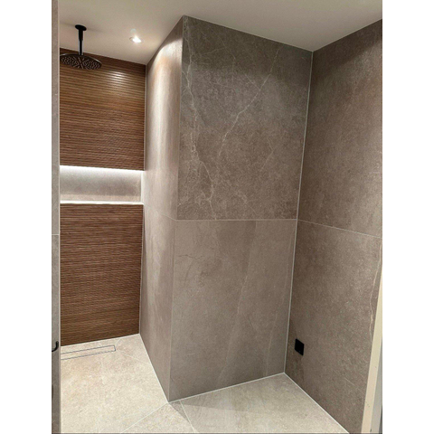 Avec un format de 40x120 cm, vous habillez rapidement et proprement de grands murs. Moins de joints signifie davantage de sérénité dans le jeu de lignes, de sorte qu’une salle de bains même plus petite paraît optiquement plus grande. La forme allongée est idéale à poser dans le sens de la longueur derrière une baignoire, le long d’un meuble de salle de bains ou dans l’angle de douche, afin d’obtenir une allure digne d’un hôtel. La teinte chaleureuse Walnut de la gamme de couleurs bois crée une ambiance naturelle et accueillante, sans les irrégularités ni les soucis d’entretien du vrai bois. Grâce aux bords rectifiés, vous pouvez appliquer des joints étroits, ce qui rend l’ensemble encore plus net et moderne. Vous combinez ainsi le charme du bois avec le look épuré d’un carrelage mural grand format en céramique.