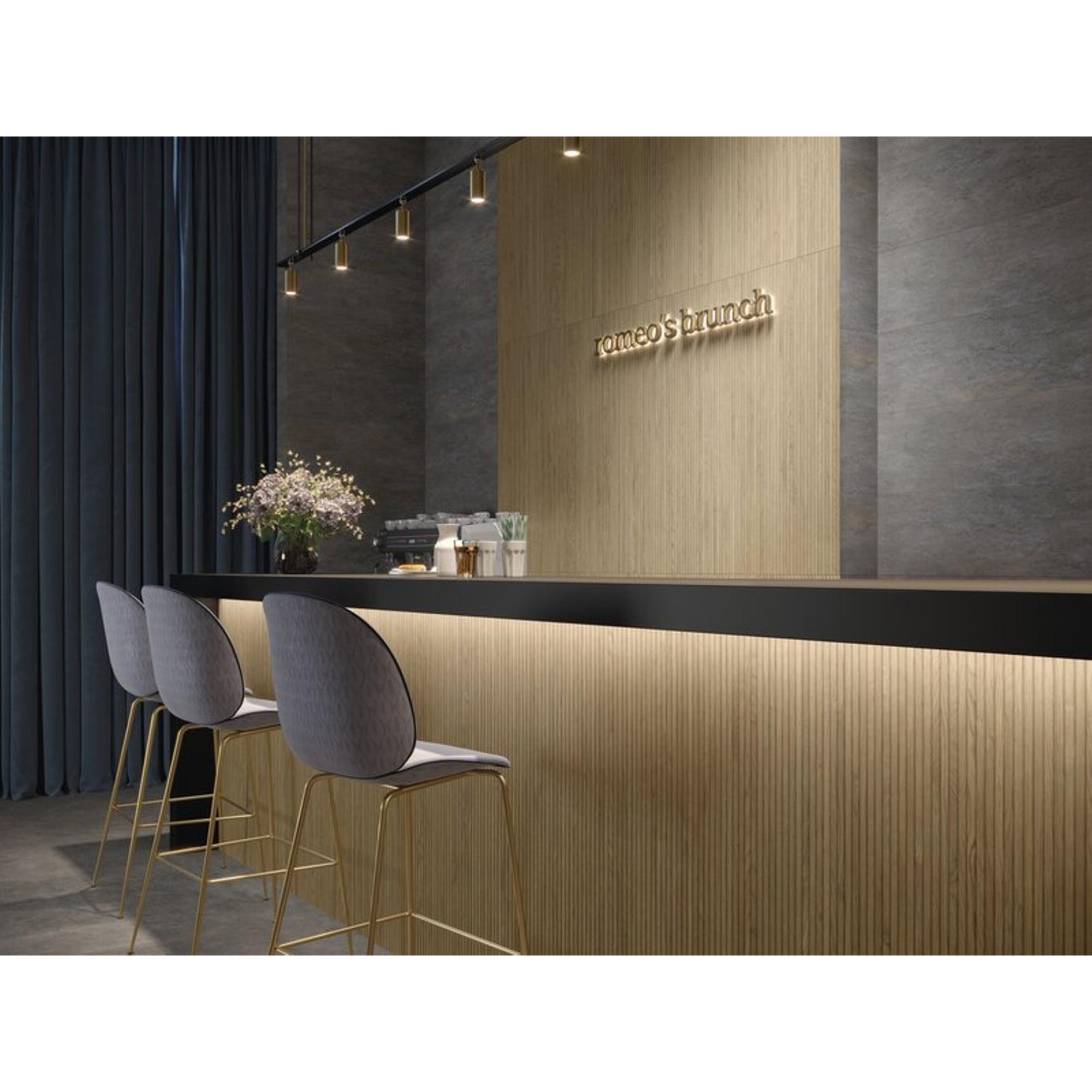 Le carrelage est rectifié, ce qui signifie que les bords sont coupés droit. Les joints peuvent ainsi être maintenus très fins, ce qui est essentiel pour un résultat réaliste et apaisant avec un aspect bois. Avec une épaisseur de 10,8 mm, le carrelage paraît solide et robuste, ce qui est agréable lors de la pose et dans l’utilisation quotidienne. Grâce au grand format, vous couvrez rapidement des mètres carrés sur le mur et limitez au minimum le nombre de joints. Cela donne non seulement un aspect plus luxueux, mais rend également le mur plus facile à nettoyer. Que vous rénoviez une salle de bains complète ou que vous souhaitiez mettre en valeur un seul mur : avec ce carrelage, vous créez rapidement une base soignée et haut de gamme.