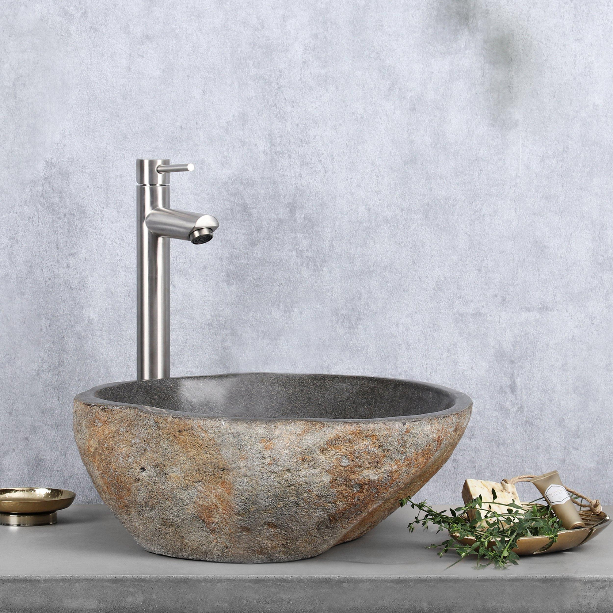 Differnz Lombok vasque à poser 36cm ronde pierre de rivière grise