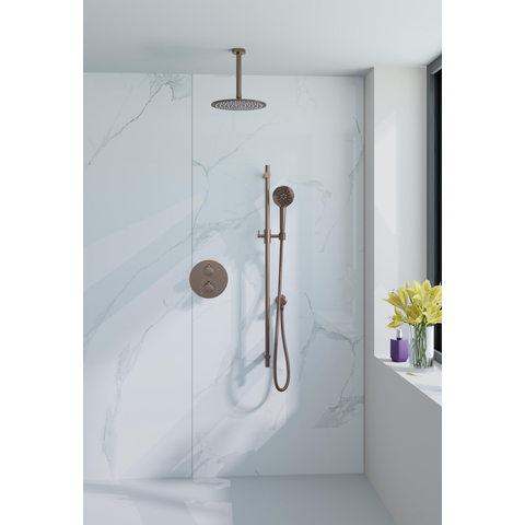 FugaFlow Eccelente Acces Ensemble de douche de pluie encastré - rond - thermostatique - bras de plafond - barre coulissante - douche de tête 25 cm - douchette ronde - Cuivre brossé PVD (Cuivre)