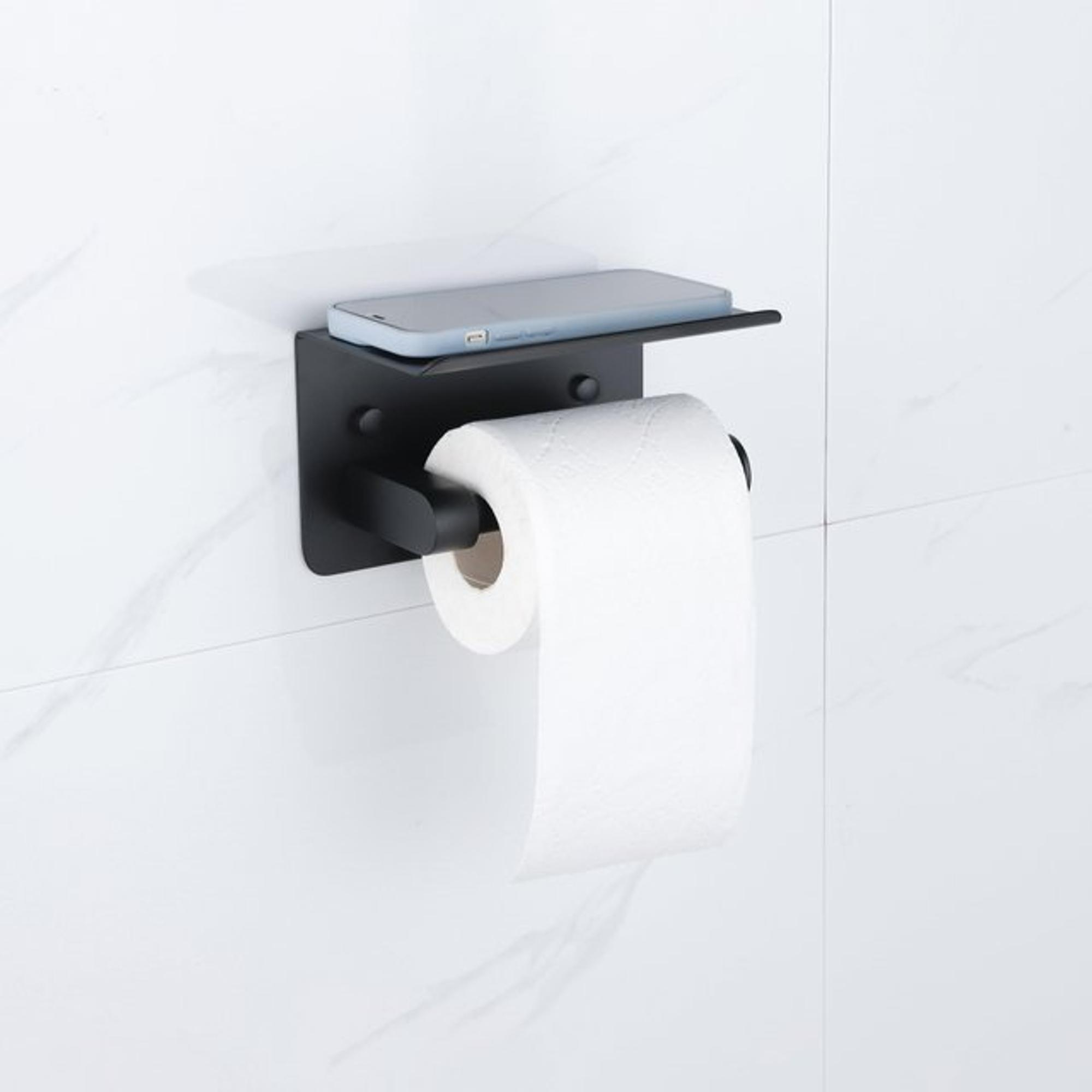 FugaFlow Eccelente Ensemble d'accessoires WC - porte-rouleau de papier toilette - brosse WC - crochet porte-serviette - noir mat