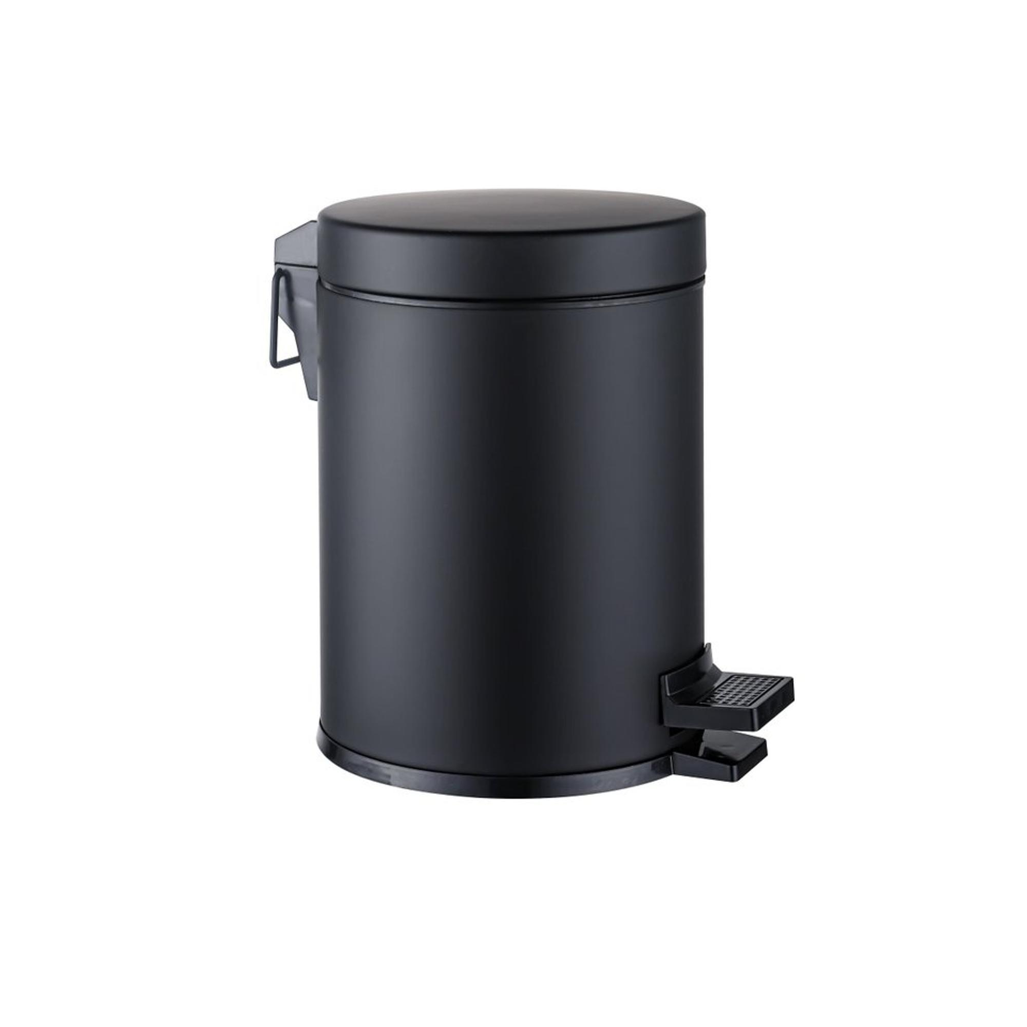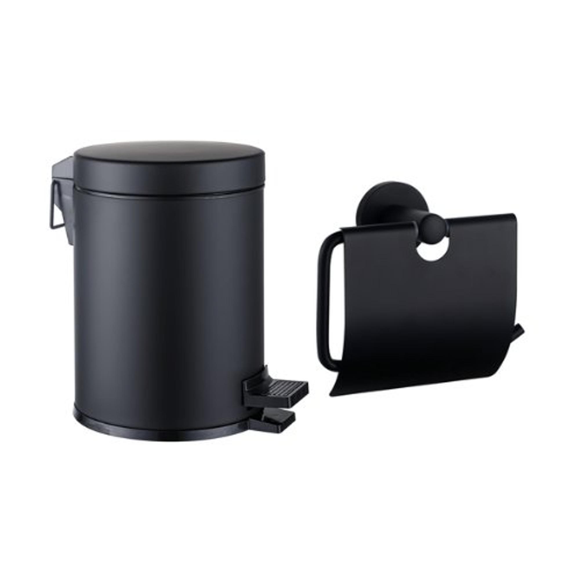 FugaFlow Eccelente Ensemble d'accessoires pour toilettes - porte-rouleau de papier toilette - avec couvercle - poubelle à pédale - 5 litres - noir mat