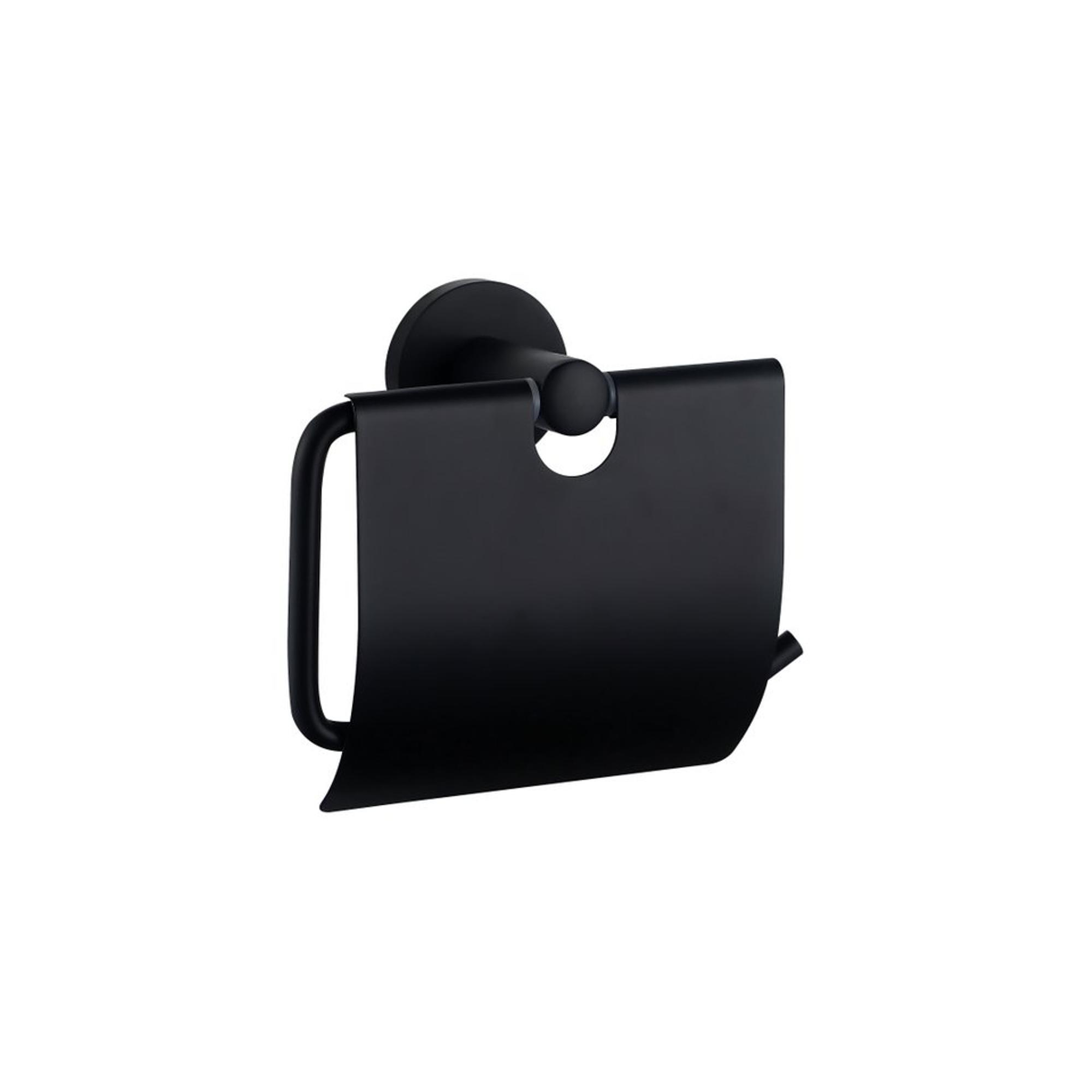 FugaFlow Eccelente Ensemble accessoires WC 3 pièces - porte-rouleau WC avec couvercle - brosse WC - double crochet rond pour serviette - Mat Noir