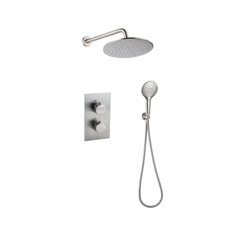 FugaFlow Eccelente Acces Ensemble de douche encastré - thermostatique - bras mural - pomme de douche principale 25cm - douchette ronde - flexible de douche lisse - Acier inoxydable brossé PVD (RVS)
