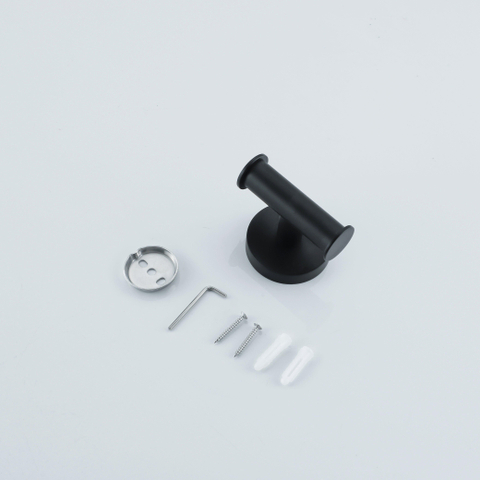 FugaFlow Eccelente Ensemble d'accessoires WC 3 pièces - porte-rouleau sans couvercle - brosse WC - double crochet rond pour serviette - Noir mat