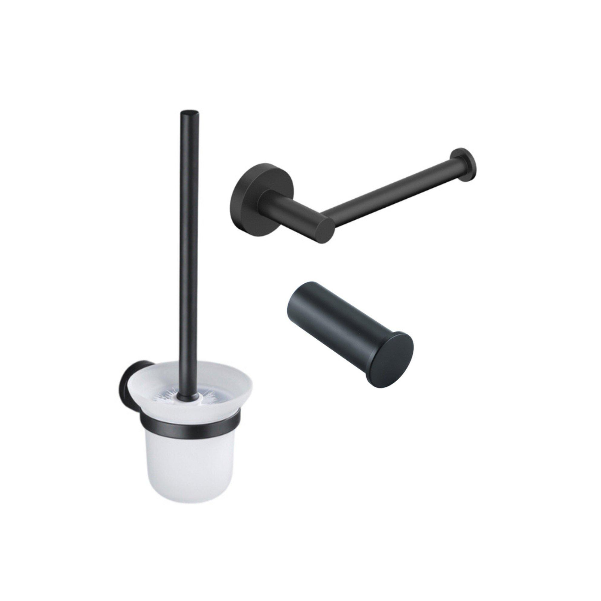 FugaFlow Eccelente Ensemble accessoires WC 3 pièces - porte-rouleau sans couvercle - brosse WC - crochet à serviette simple rond - noir mat