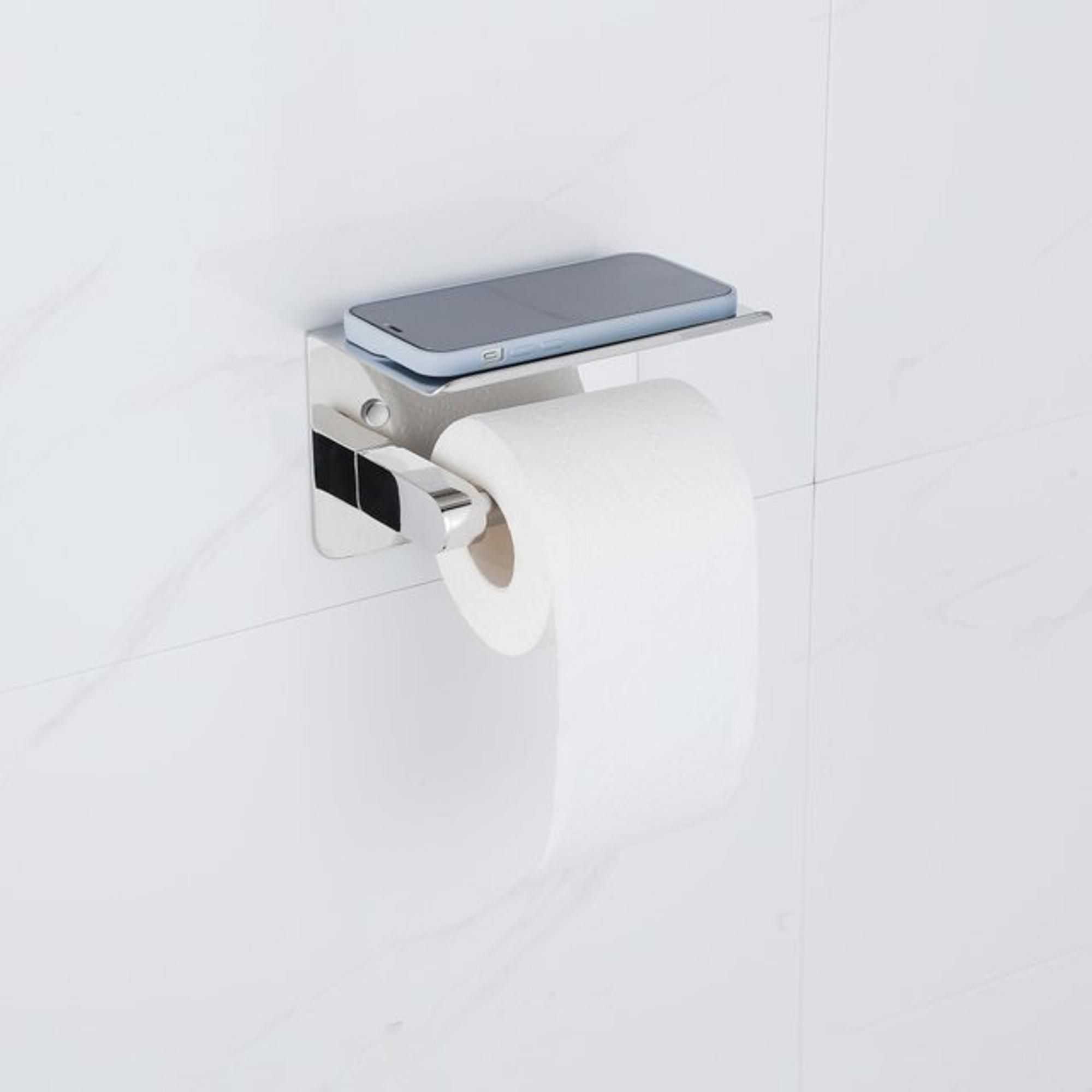 FugaFlow Eccelente Ensemble d'accessoires WC - porte-rouleau de papier toilette - brosse WC - crochet serviette - chrome