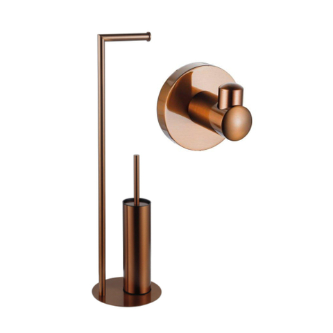 FugaFlow Eccelente Porte-rouleau de papier toilette indépendant avec brosse de toilette l- avec crochet pour serviette - Cuivre brossé PVD (Cuivre)