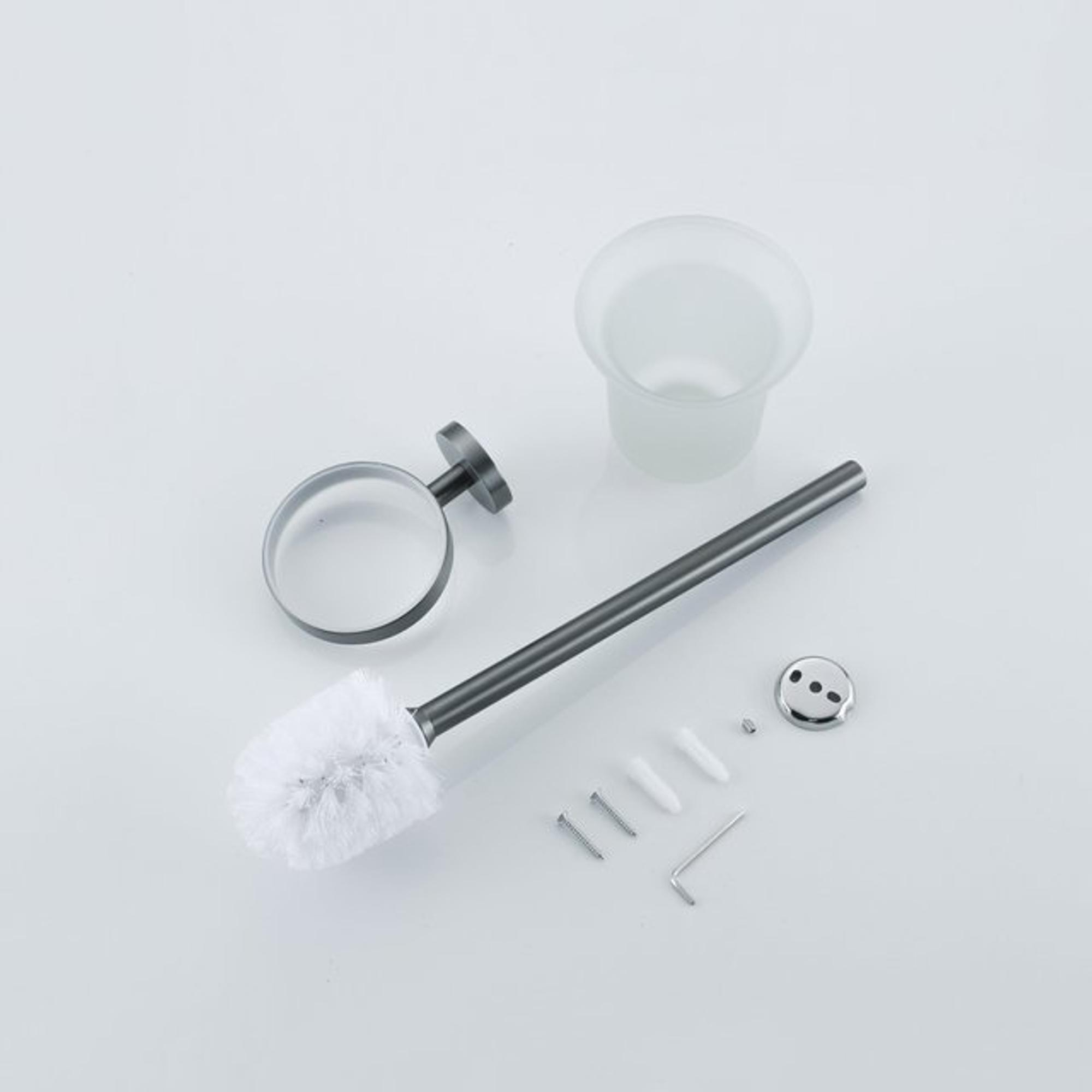 Cette élégante Toiletset FugaFlow Eccelente Acces comprend un porte-rouleau de papier toilette, une brosse WC et un crochet pour serviette, tous finis en PVD gunmetal brossé. Ce set allie design moderne et fonctionnalité pour sublimer votre salle de bains tout en offrant une organisation optimale.Avantages: