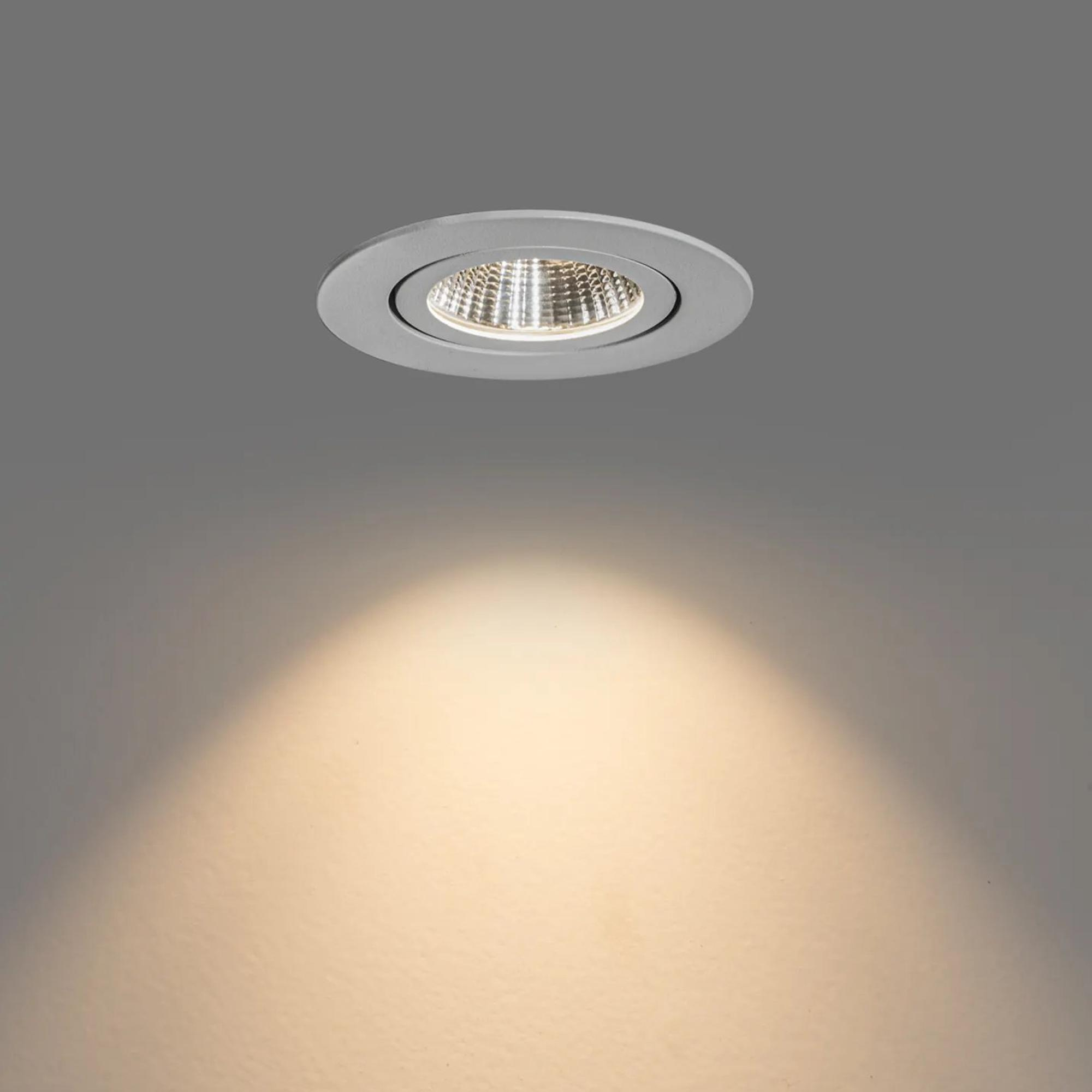 Ce spot encastrable est équipé d’une source lumineuse LED intégrée et dimmable, ce qui vous permet d’ajuster avec précision l’intensité lumineuse en fonction du moment de la journée. Utilisez une lumière forte pour les activités fonctionnelles ou baissez le variateur pour obtenir une ambiance plus douce, digne d’un hôtel. La température de couleur d’environ 3000K offre une lumière blanc chaud agréable pour un usage quotidien, sans paraître trop vive ni trop froide. Grâce à la fonction orientable, vous dirigez le faisceau lumineux exactement là où vous en avez besoin : sur le lavabo, sur un beau mur carrelé ou sur des éléments décoratifs de votre salle de bains. Vous créez ainsi non seulement un éclairage pratique, mais aussi une expérience lumineuse réfléchie et chaleureuse.