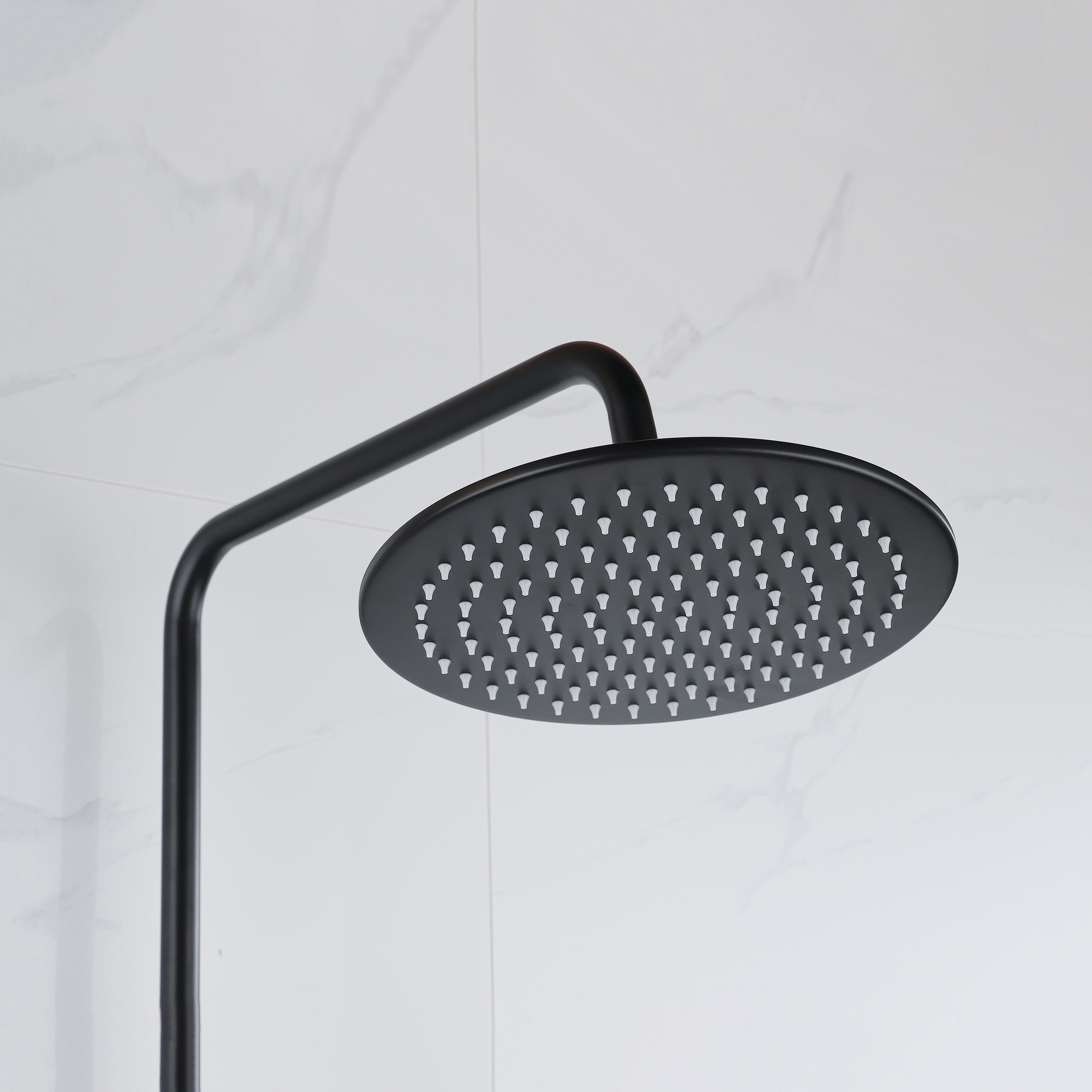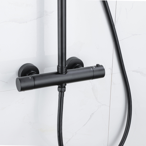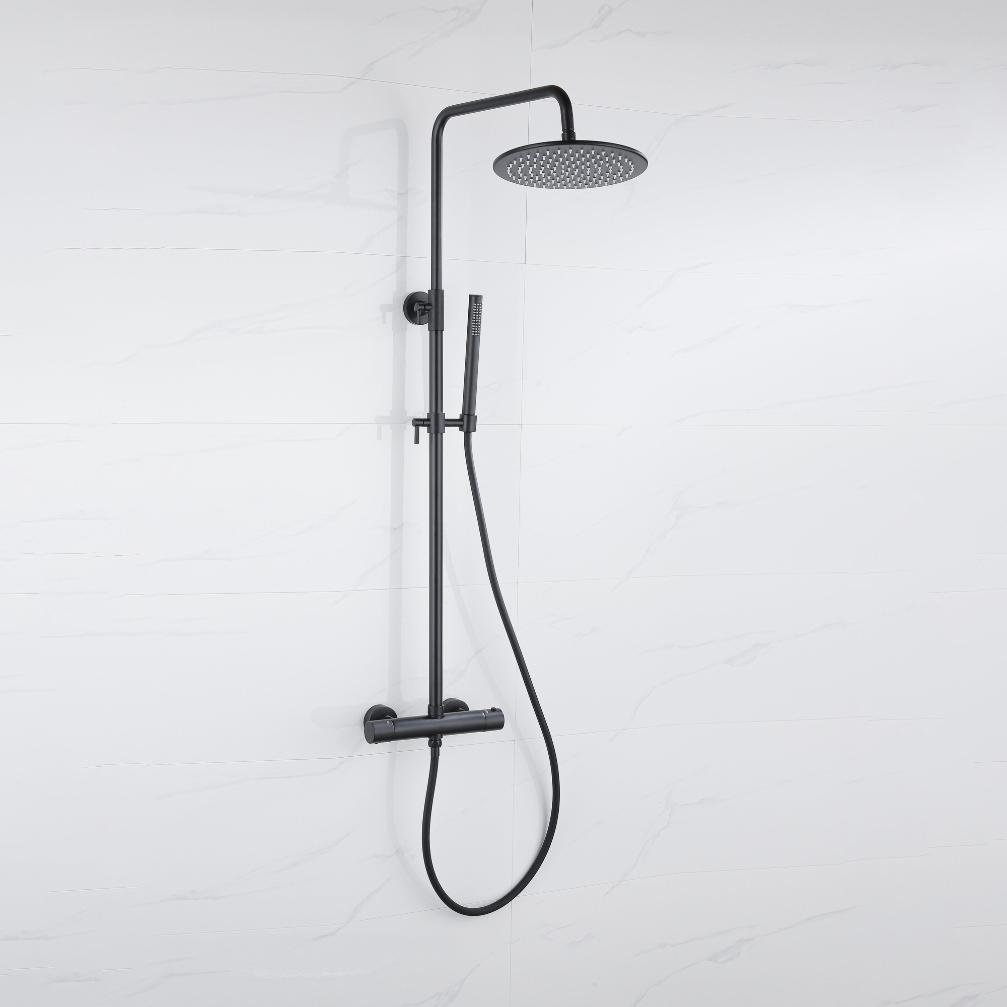 FugaFlow Eccelente Ensemble de douche de tête - thermostatique - douche de tête 25cm - flexible lisse - douchette à main sur barre - noir mat