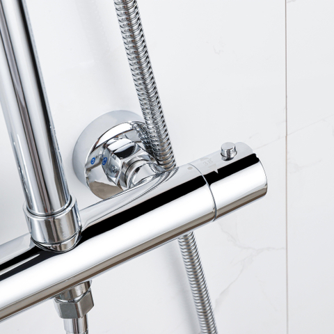 FugaFlow Eccelente Ensemble de douche de tête avec robinet thermostatique - 25cm douche de tête - flexible métallique - douchette ronde - chrome