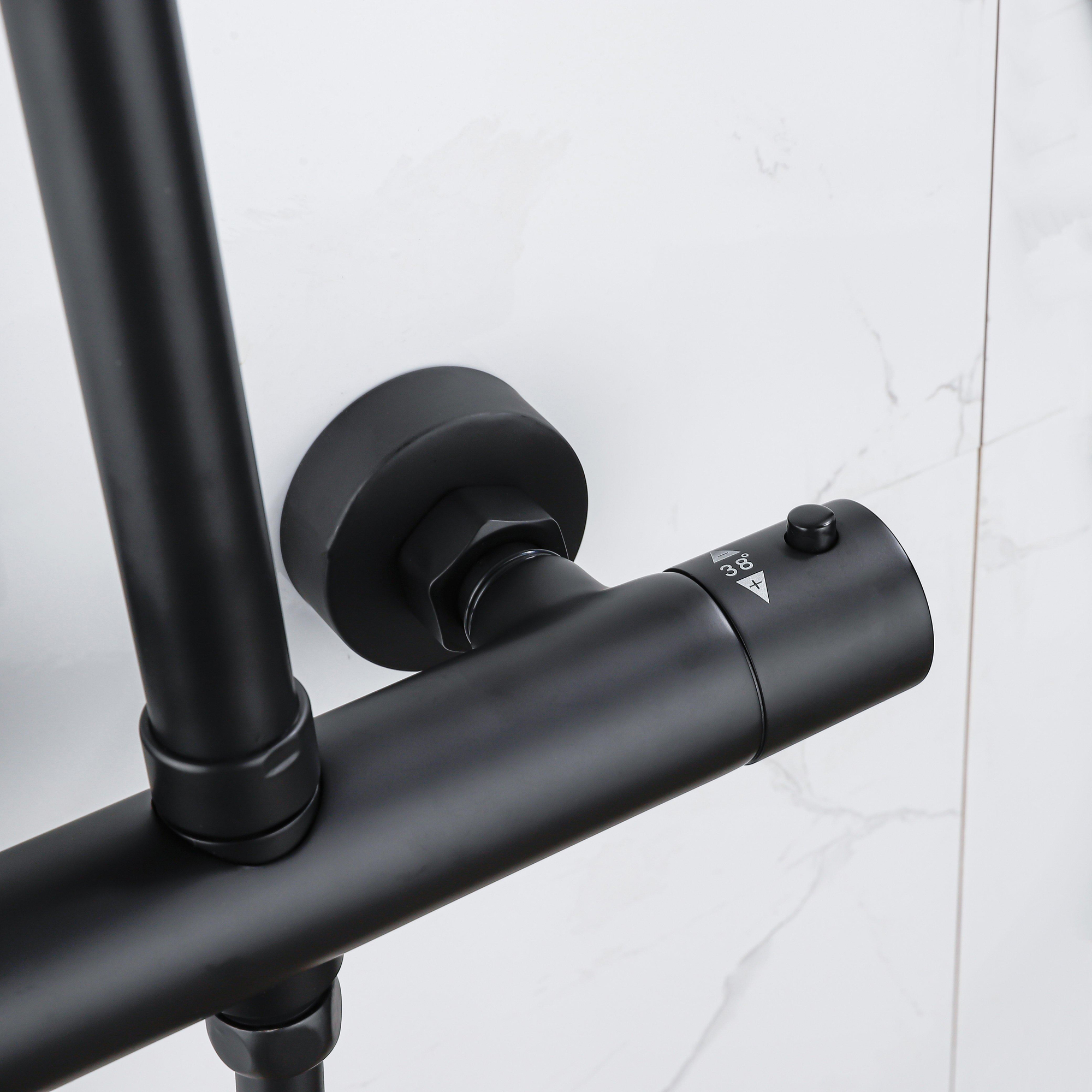 FugaFlow Eccelente Ensemble de douche de tête - thermostatique - douche de tête 25cm - flexible métallique - douchette ronde - noir mat