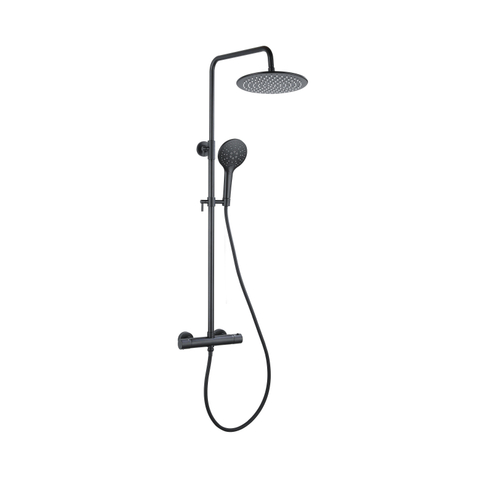 FugaFlow Eccelente Ensemble de douche de tête - thermostatique - douche de tête 30cm - flexible lisse - douchette ronde - noir mat
