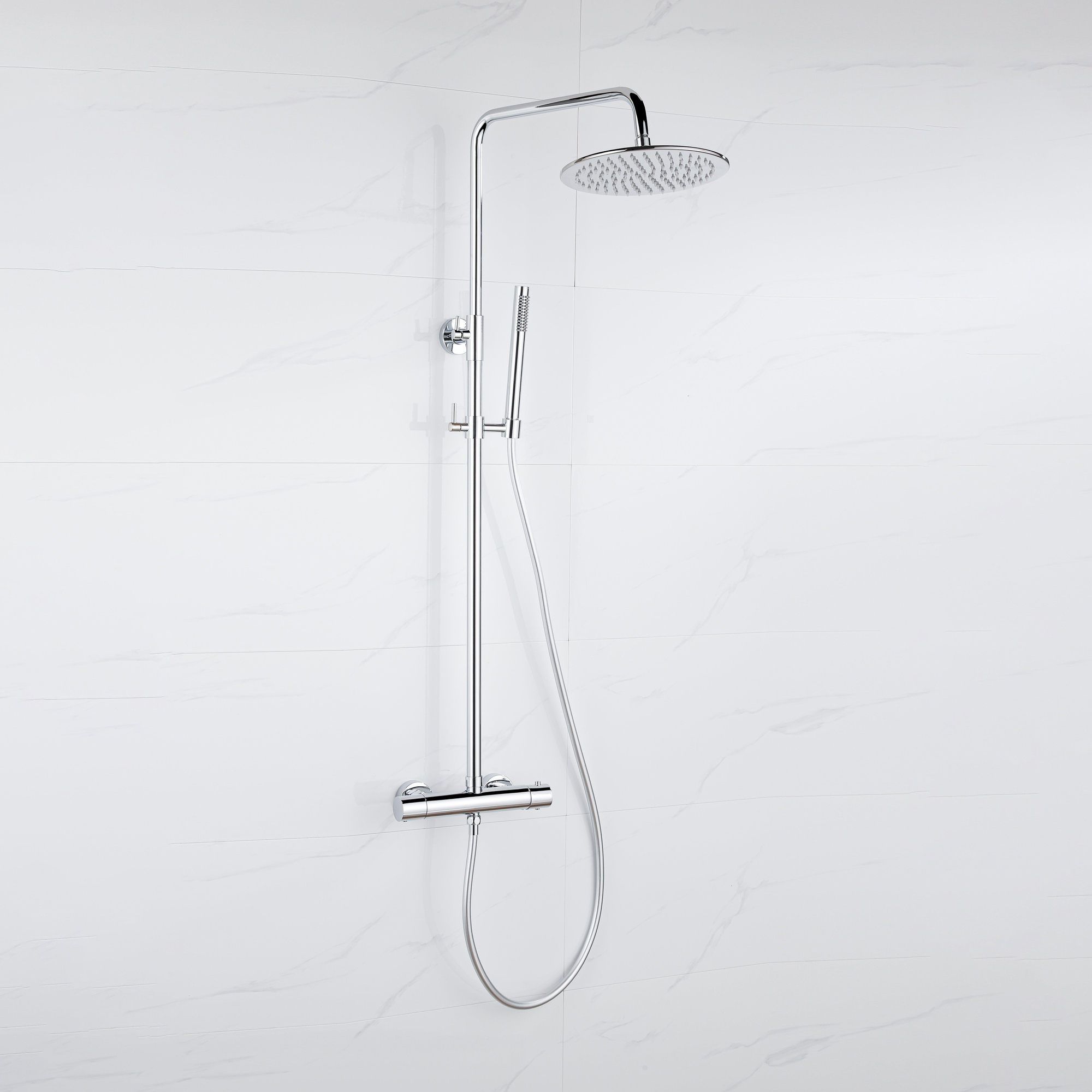 FugaFlow Eccelente Ensemble de douche de tête - thermostatique - douche de tête 30cm - flexible lisse - douchette à main sur barre - chrome