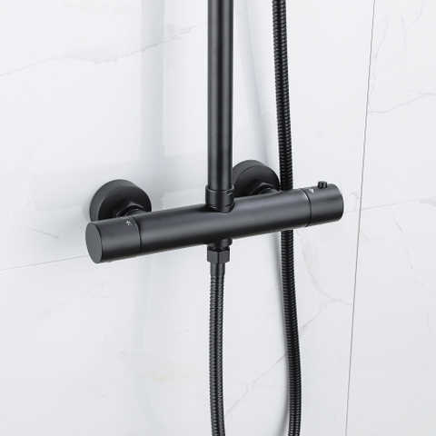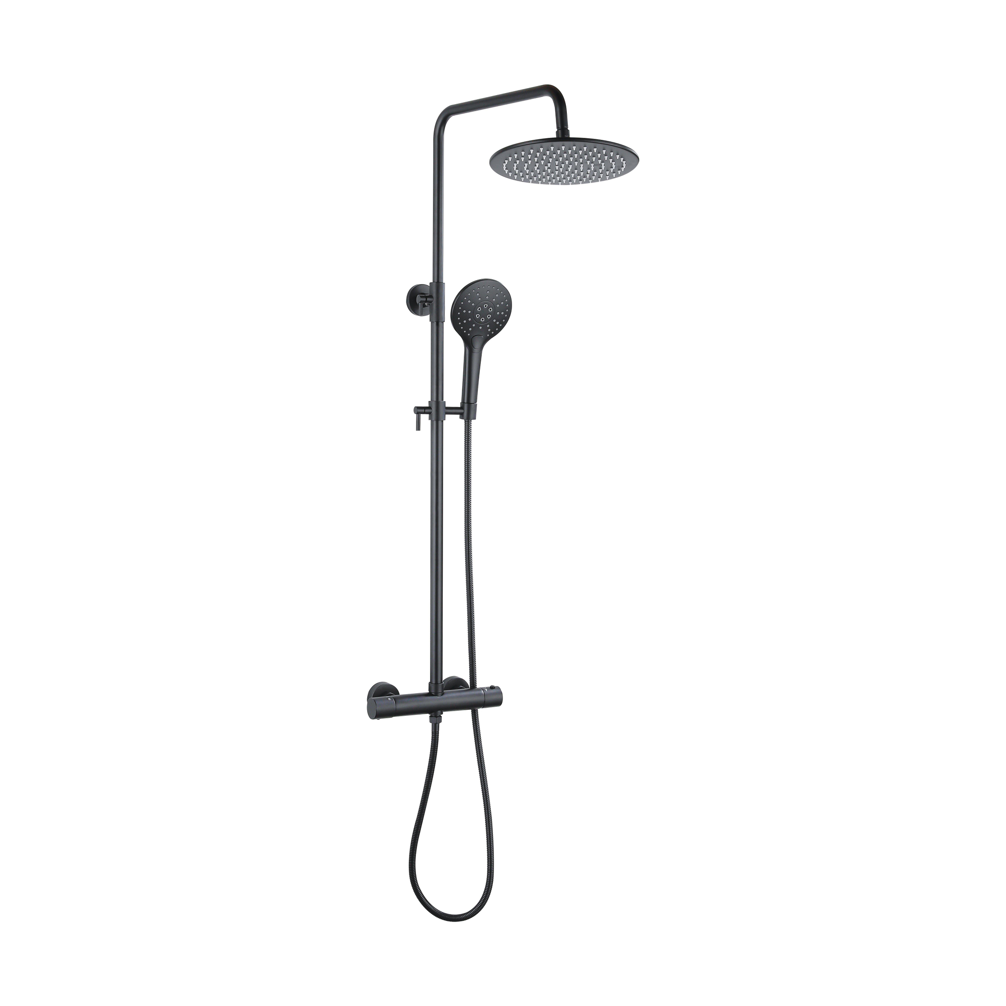 FugaFlow Eccelente Ensemble de douche de tête - thermostatique - douche de tête 30cm - flexible métallique - douchette ronde - noir mat