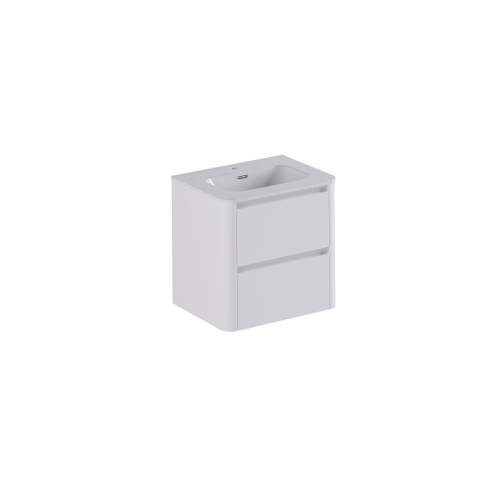 Avec une largeur de 62 cm et une profondeur de 46 cm, vous exploitez au mieux l'espace disponible, sans que le meuble paraisse massif ou gênant. La forme rectangulaire aux angles arrondis offre une grande surface de plan autour du lavabo, de sorte que vous disposiez toujours de place pour vos accessoires quotidiens de salle de bains. Le trou de robinet unique offre la place pour un mitigeur de lavabo moderne au choix, tandis que le plan intégré et le siphon fourni assurent une solution pratique, directement prête à être installée. De ce fait, ce meuble convient particulièrement comme ensemble complet pour une nouvelle salle de bains, mais aussi comme remplacement astucieux d'un ancien lavabo avec meuble bas séparé.