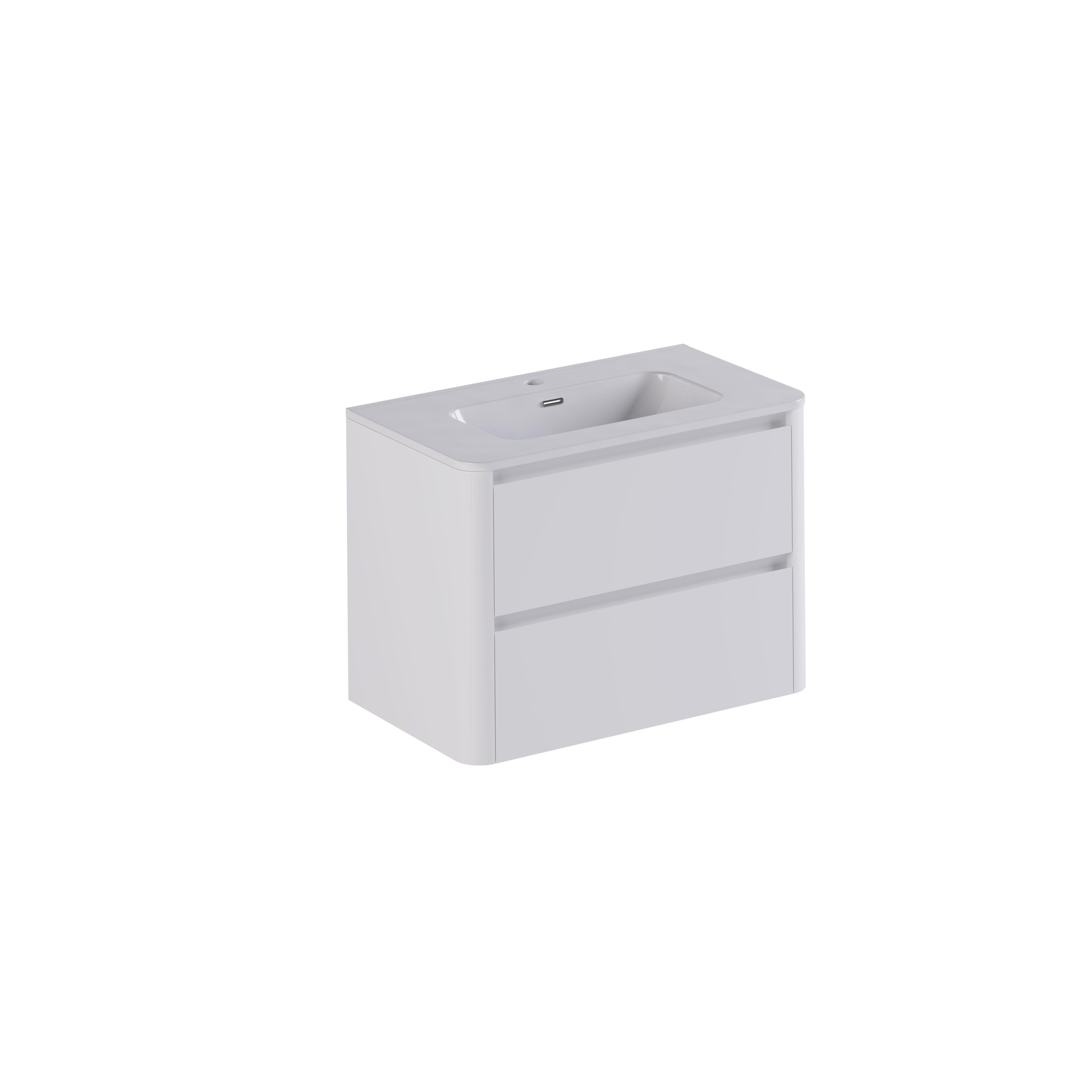 Thebalux Sunny Ensemble meuble de salle de bains - 82x46x57cm - lavabo - céramique - 1 trou de robinet - blanc brillant - meuble bas - 2 tiroirs - sans poignées - placage bois - Ibiza White (blanc)