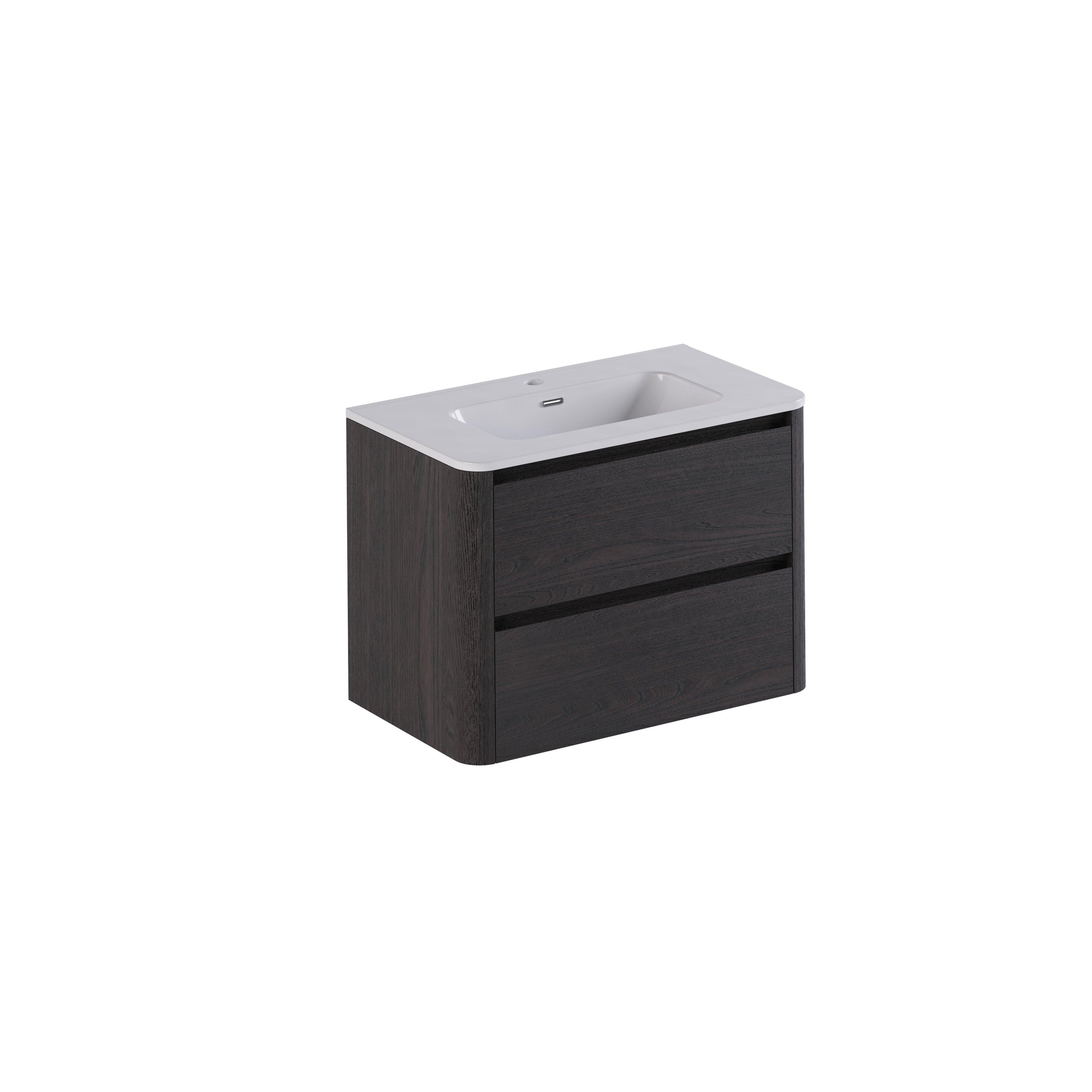 Thebalux Sunny Ensemble meuble de salle de bains - 82x46x57cm - lavabo - céramique - 1 trou de robinet - blanc brillant - meuble bas - 2 tiroirs - sans poignée - placage bois - Chocolate (anthracite)