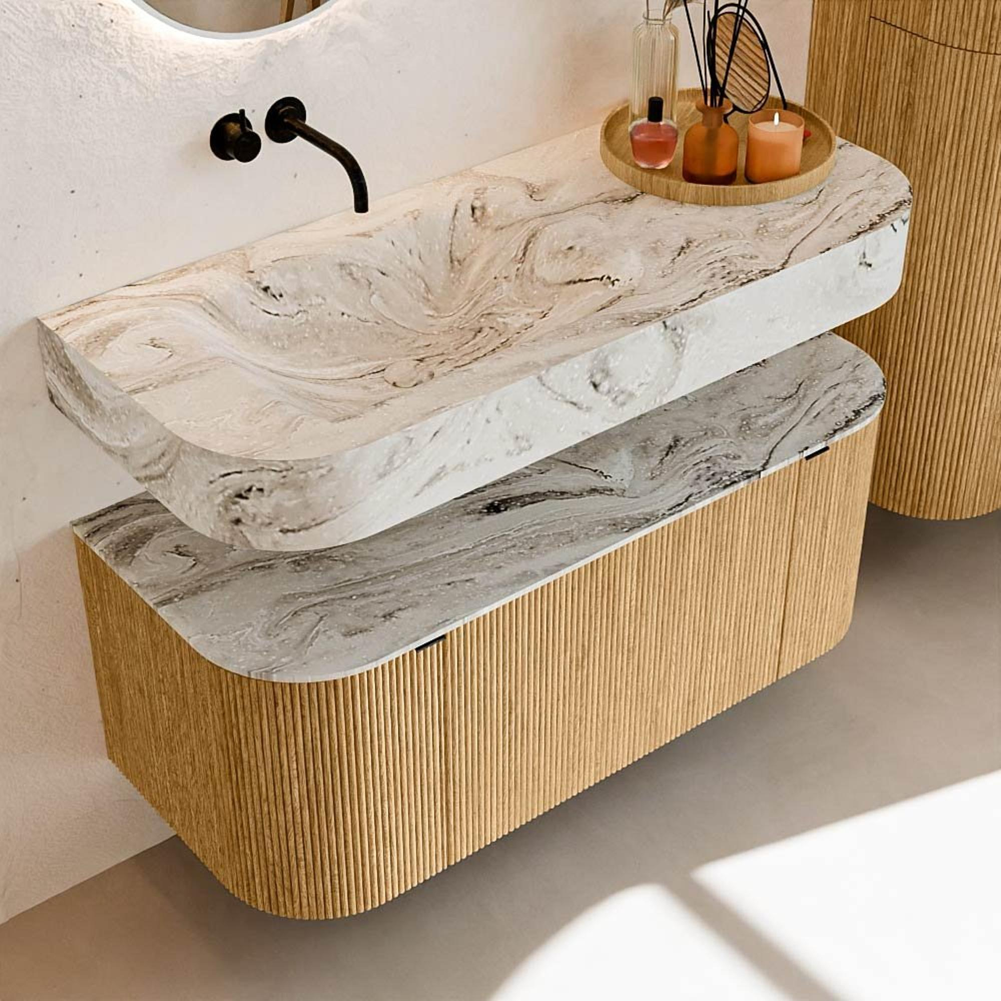 Meuble de salle de bains THOR-DLUX : Lignes organiques & Artisanat fonctionnel.