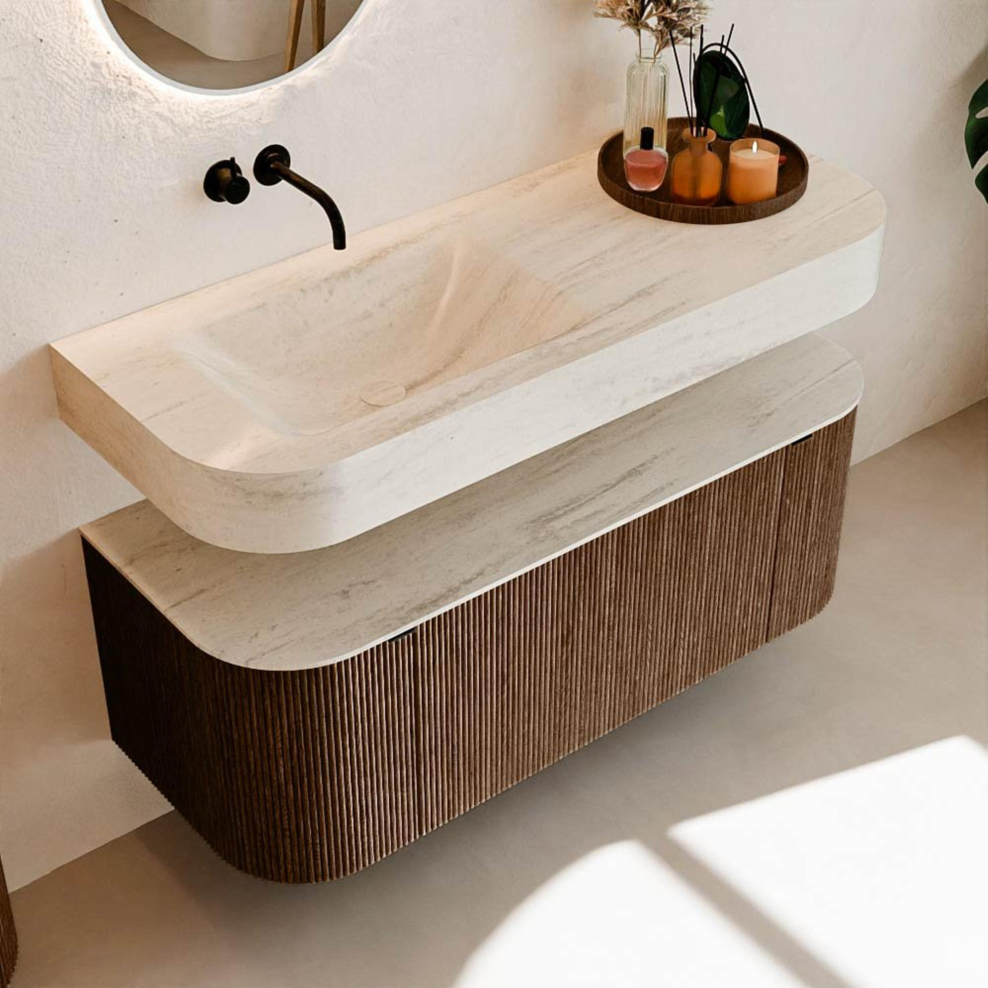 Meuble de salle de bains THOR-DLUX : Lignes organiques & Artisanat fonctionnel.