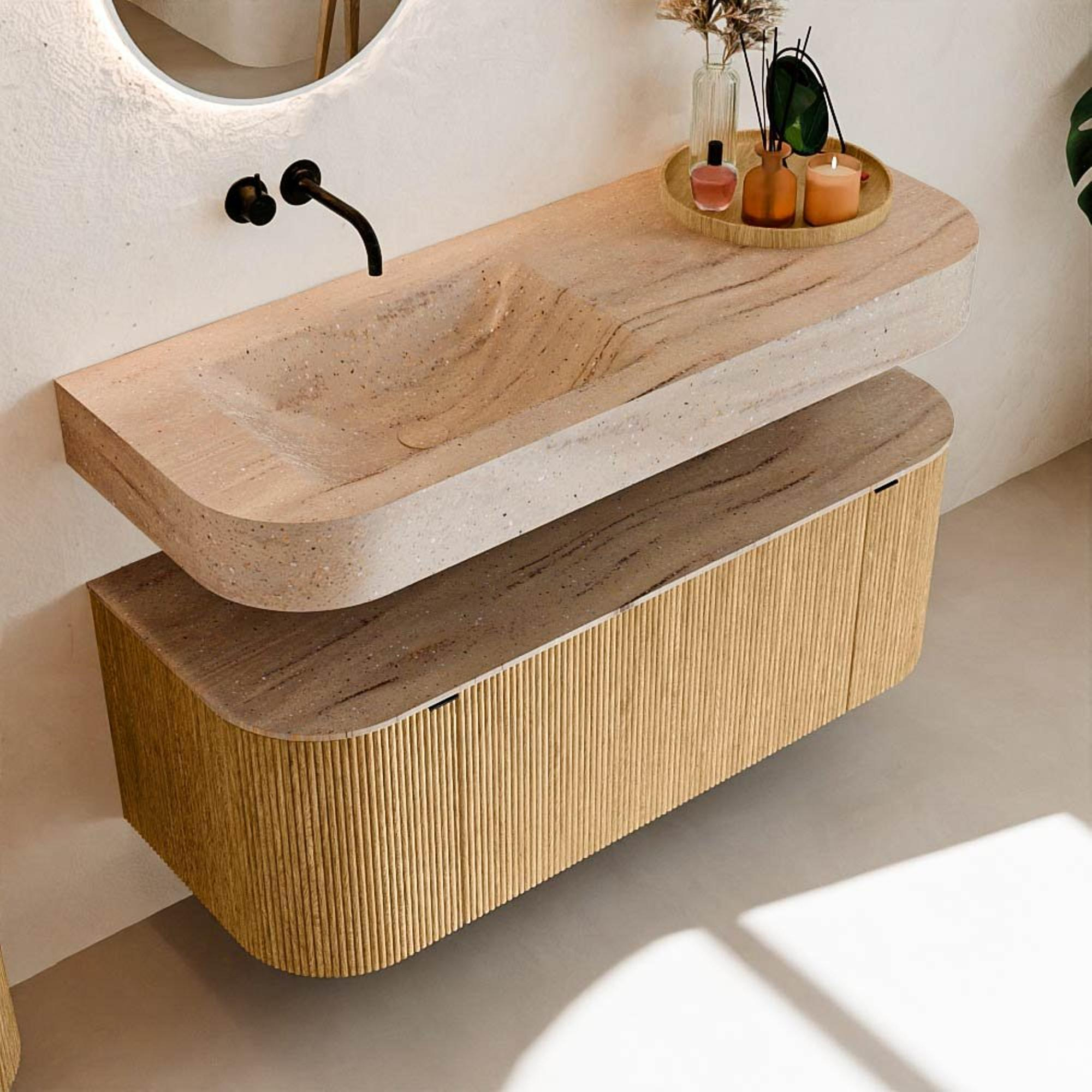 Meuble de salle de bains THOR-DLUX : Lignes organiques & Artisanat fonctionnel.