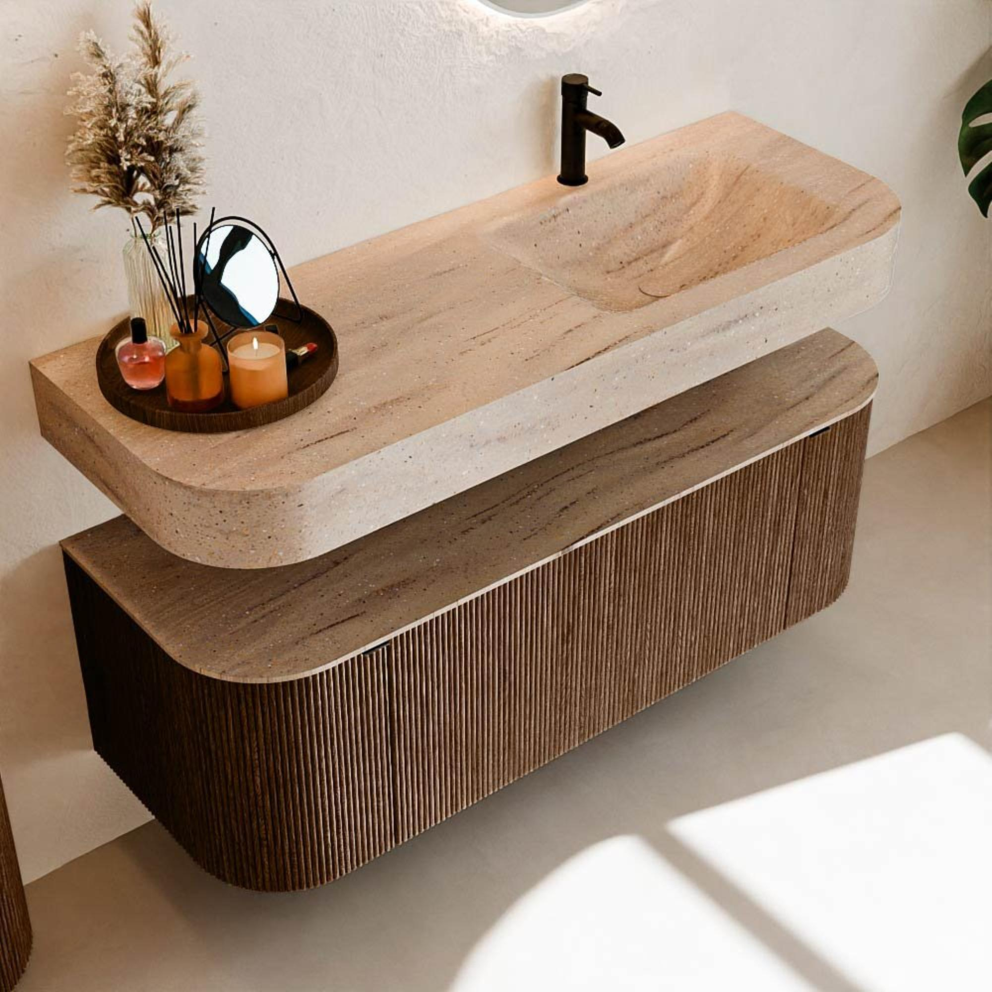 Meuble de salle de bains THOR-DLUX : Lignes organiques & Artisanat fonctionnel.