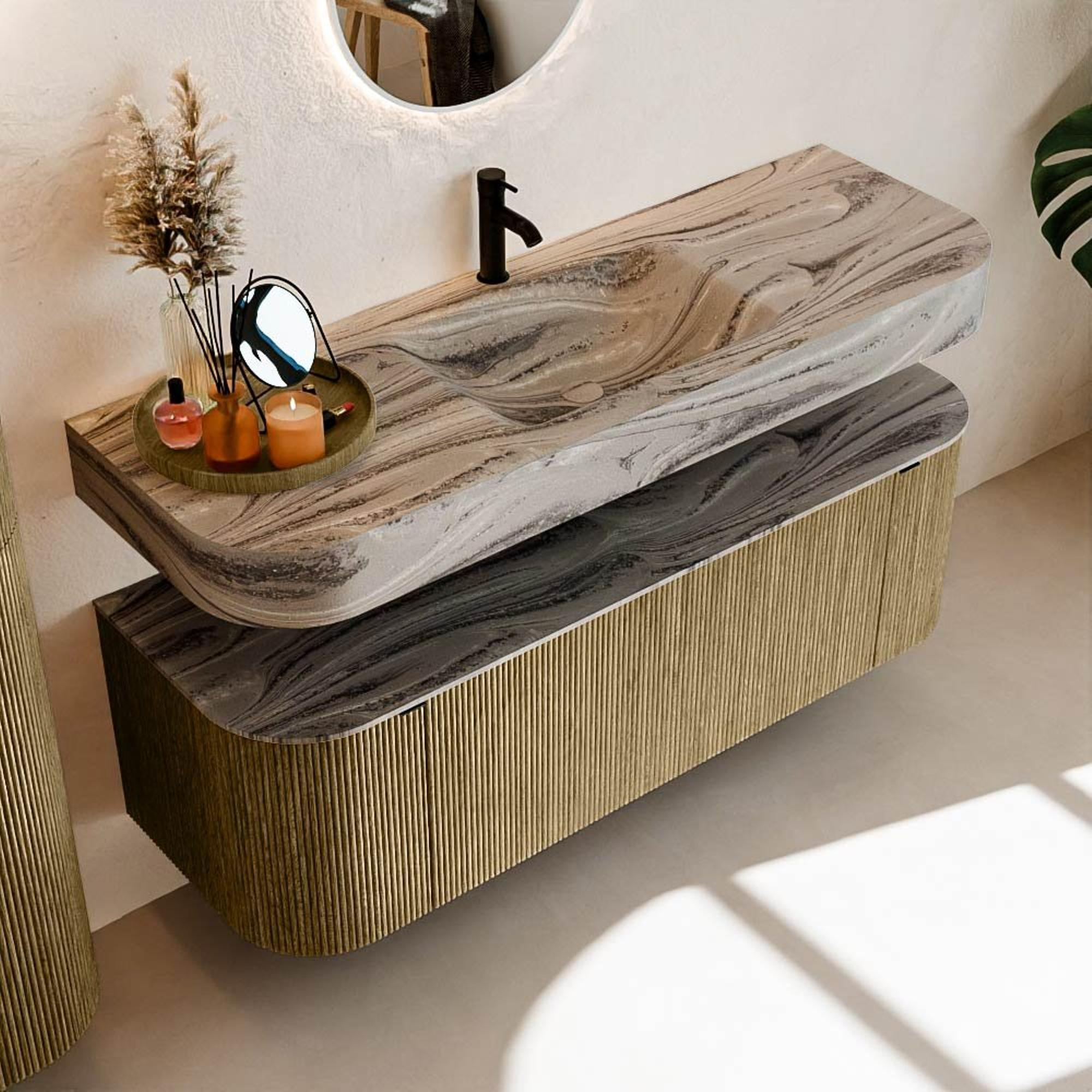 Meuble de salle de bains THOR-DLUX : Lignes organiques & Artisanat fonctionnel.