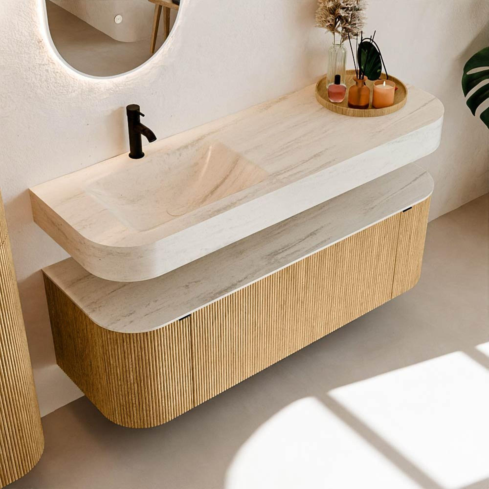 Meuble de salle de bains THOR-DLUX : Lignes organiques & Artisanat fonctionnel.