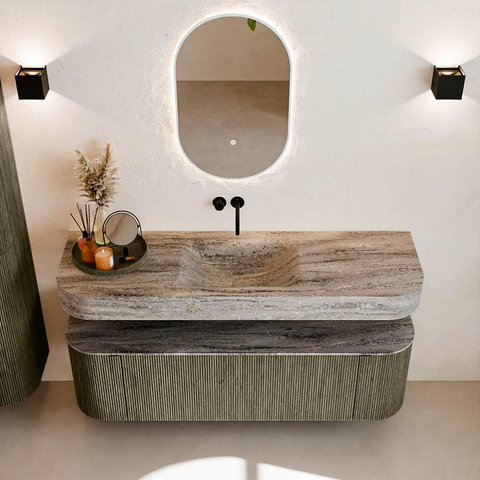 Matériaux naturels dans des tons chauds. Les nervures verticales apportent rythme et texture au design, tandis que le chêne confère une apparence chaleureuse et artisanale. Choisissez parmi 5 teintes de bois OAK, WALNUT, DUSK, SHADOW et RUBY, des couleurs de bois soigneusement sélectionnées pour enrichir les salles de bains modernes et classiques.