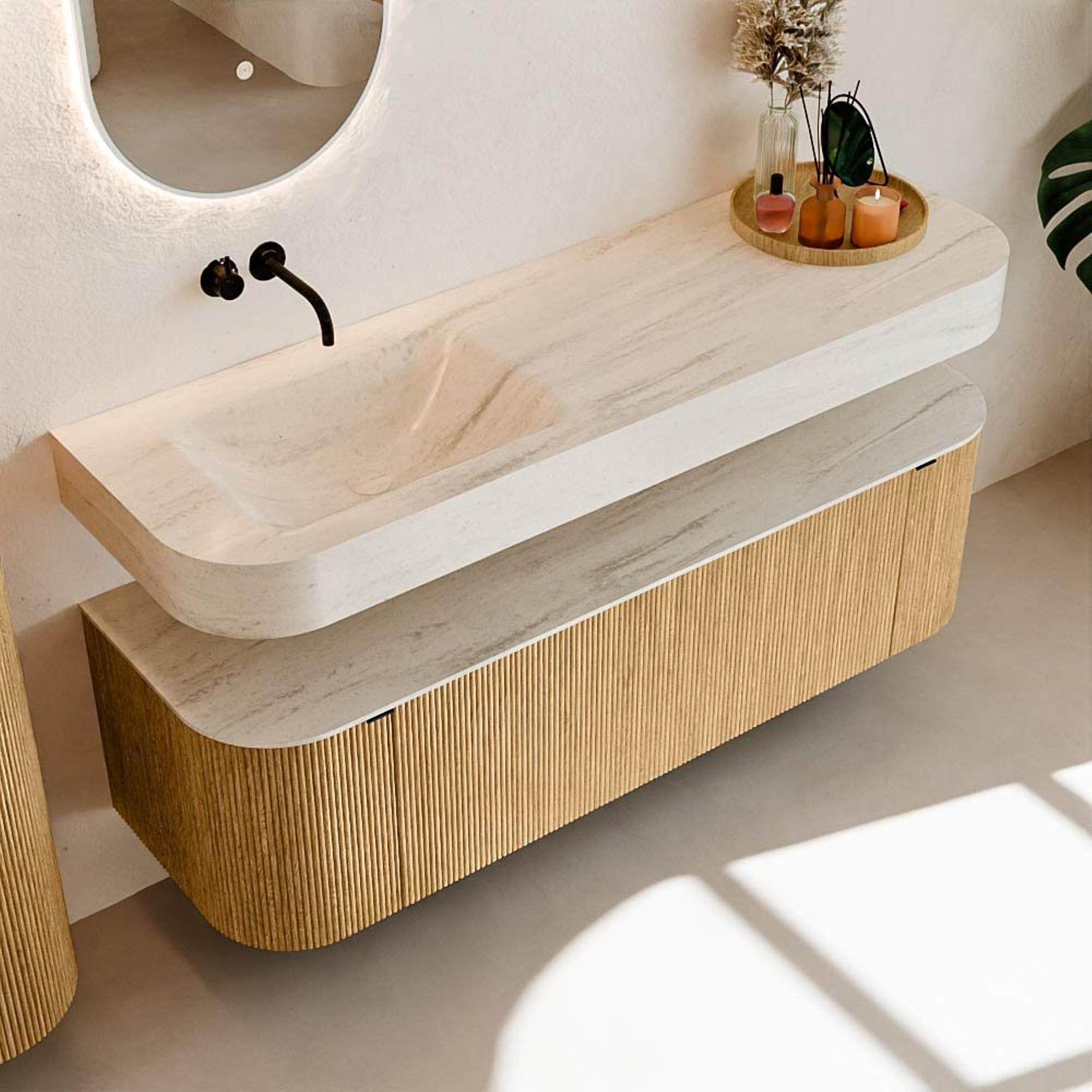 Meuble de salle de bains THOR-DLUX : Lignes organiques & Artisanat fonctionnel.