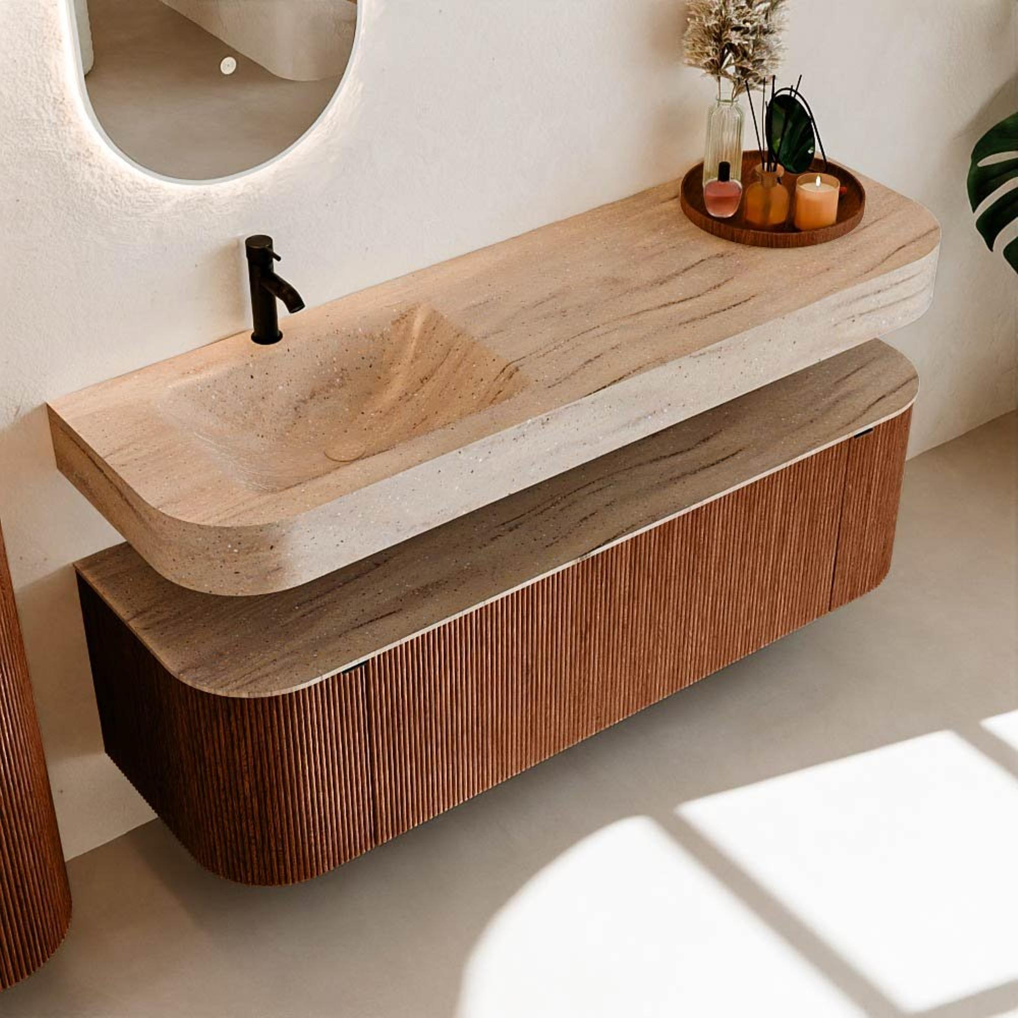 Meuble de salle de bains THOR-DLUX : Lignes organiques & Artisanat fonctionnel.