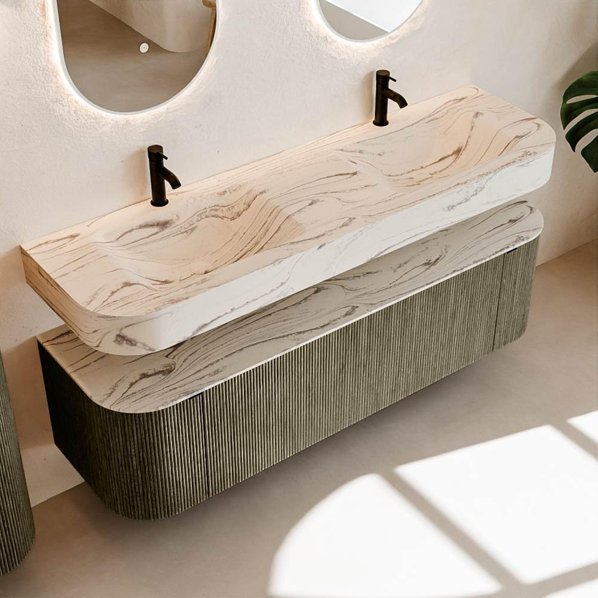 Meuble de salle de bains THOR-DLUX : Lignes organiques & Artisanat fonctionnel.