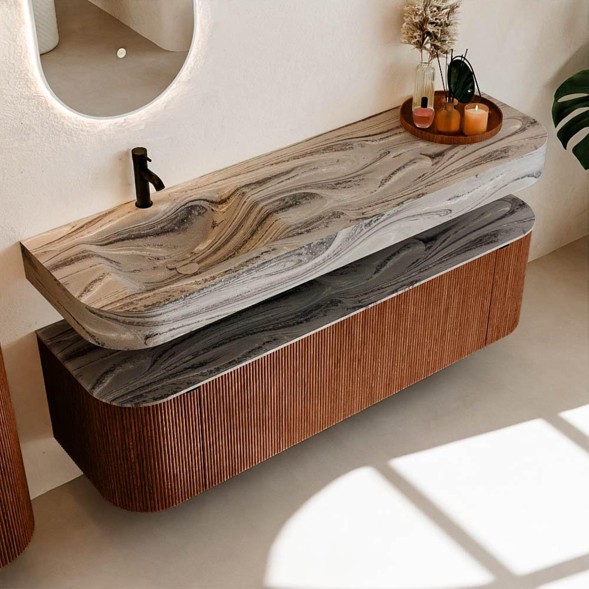 Meuble de salle de bains THOR-DLUX : Lignes organiques & Artisanat fonctionnel.
