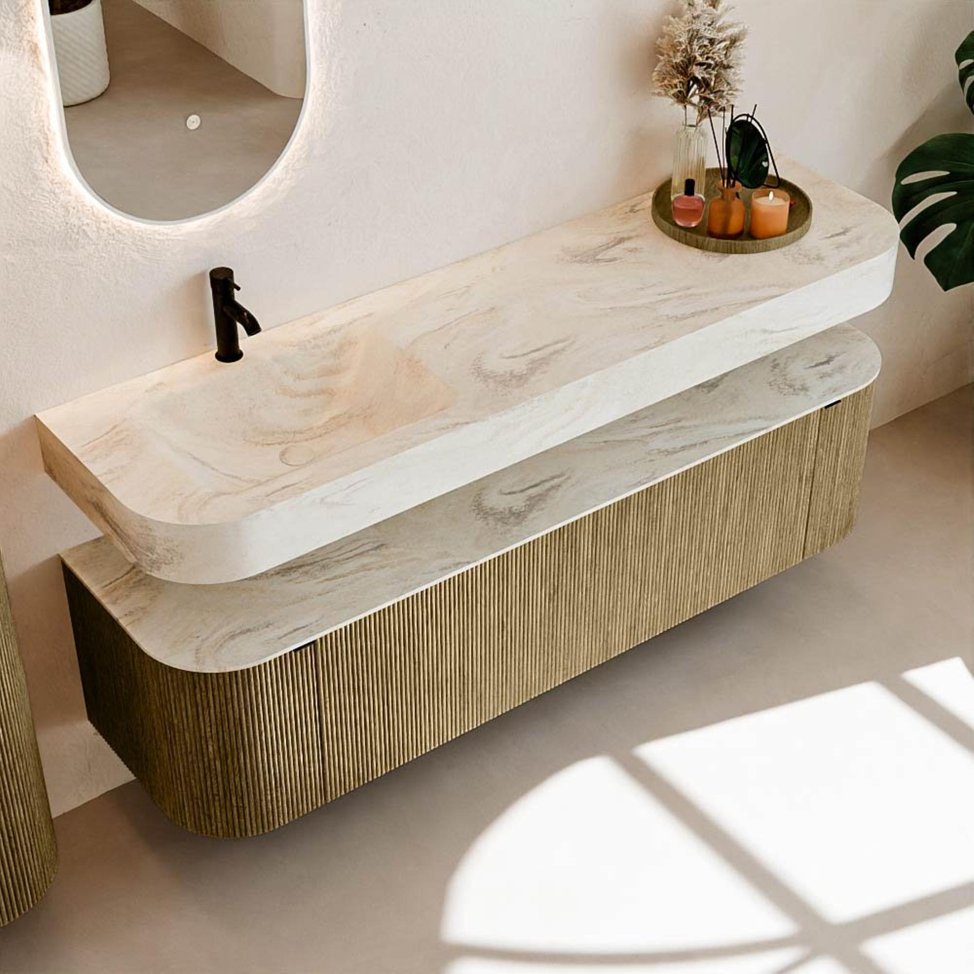 Meuble de salle de bains THOR-DLUX : Lignes organiques & Artisanat fonctionnel.