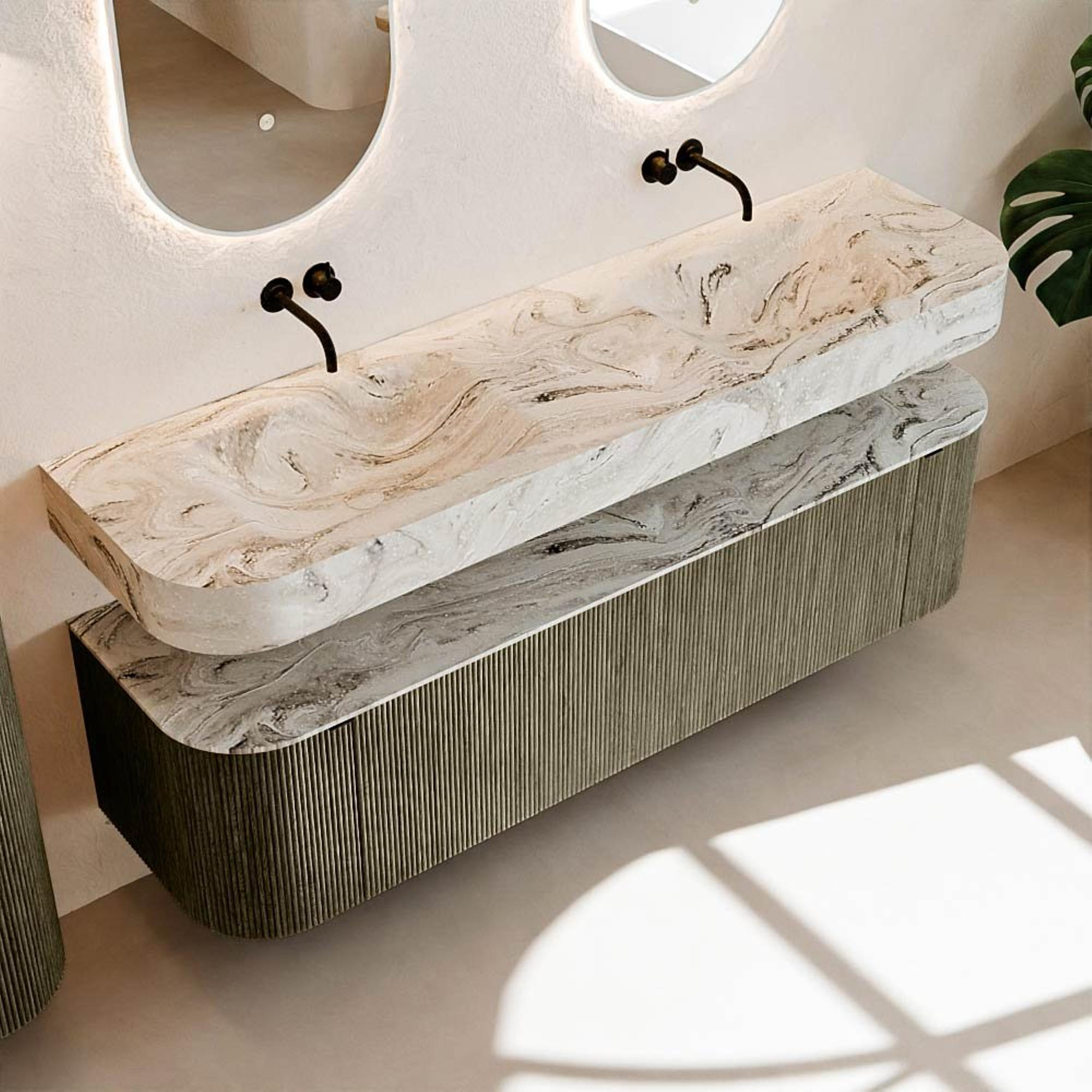 Meuble de salle de bains THOR-DLUX : Lignes organiques & Artisanat fonctionnel.