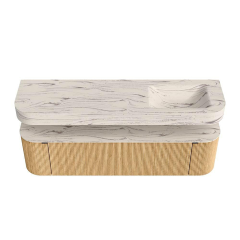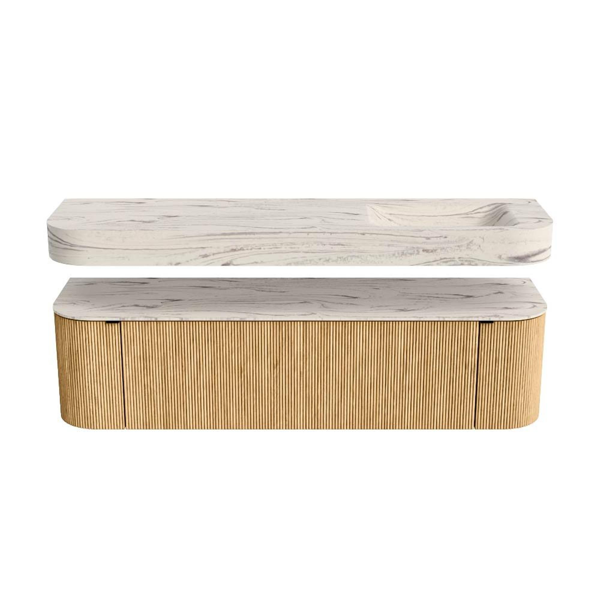 MONDIAZ THOR-DLUX 170cm meuble de salle de bains arrondi gauche + droite couleur Oak avec 1 tiroir et 2 portes. Vasque suspendue CLOUD Droite 1 trou de robinet couleur Nata.