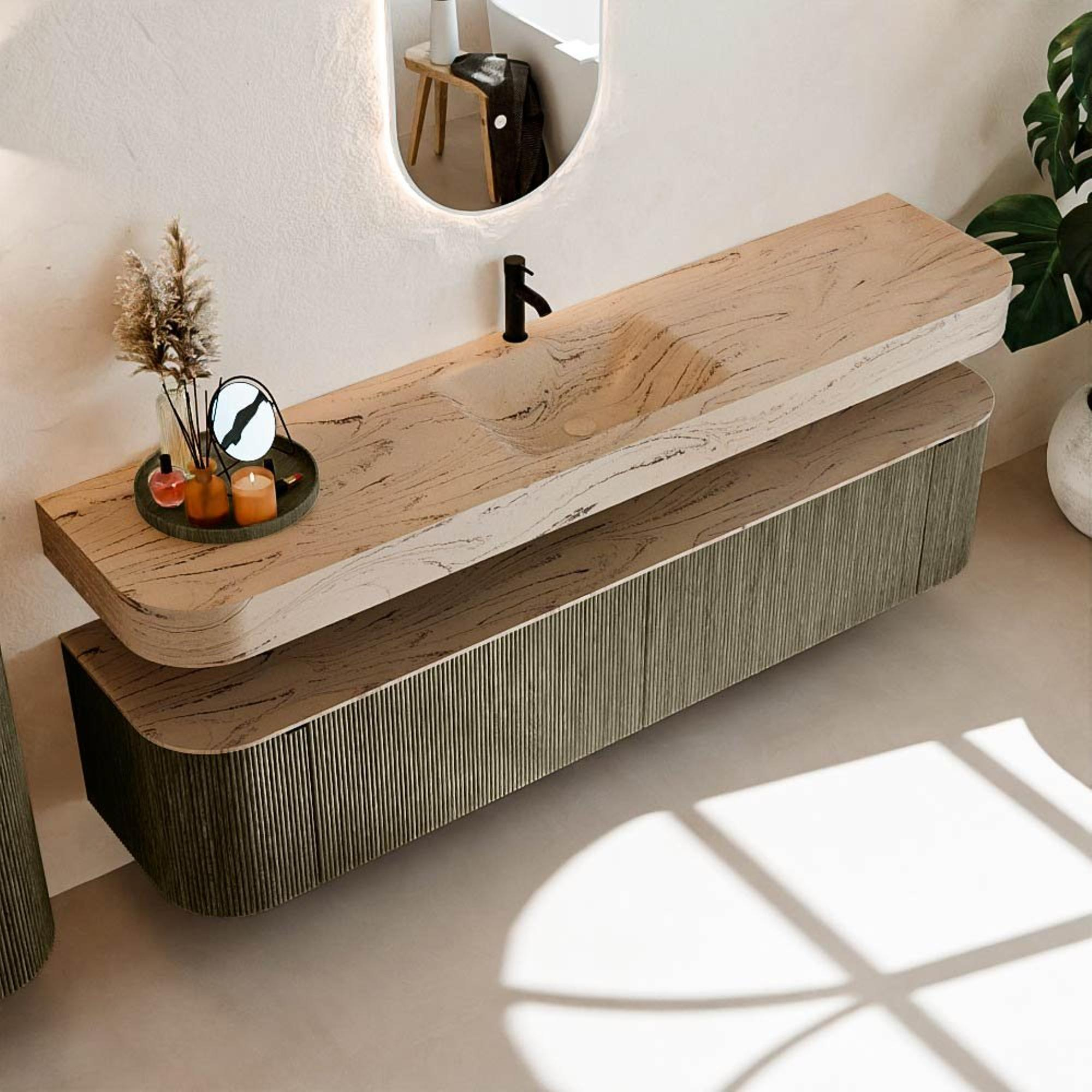Meuble de salle de bains THOR-DLUX : Lignes organiques & Savoir-faire fonctionnel.