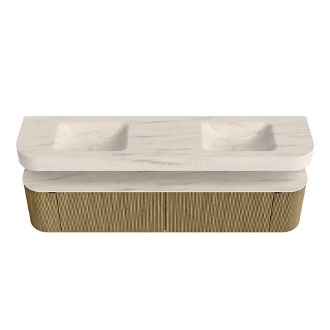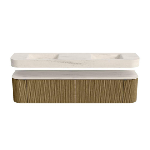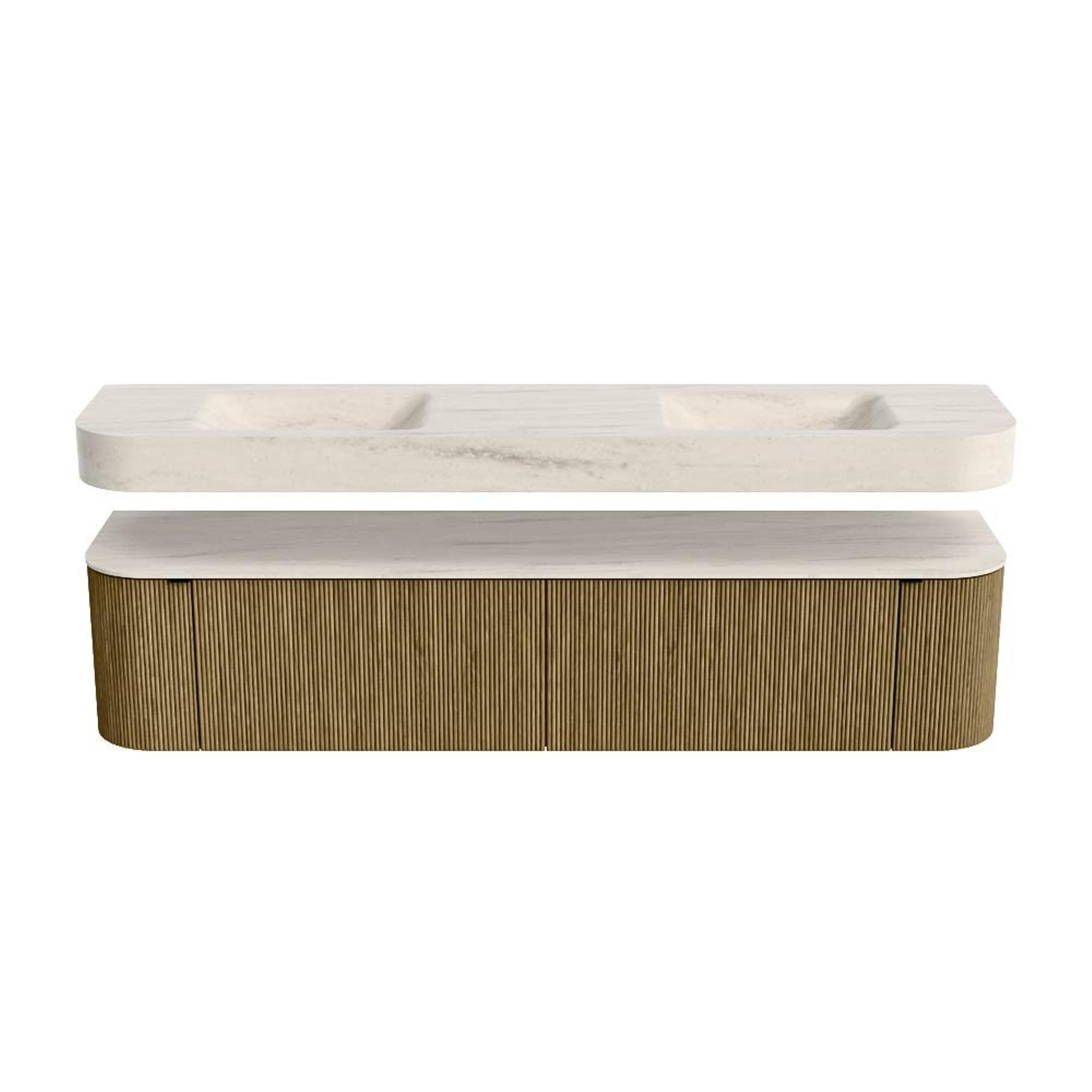 MONDIAZ THOR-DLUX Meuble de salle de bains - 200cm - arrondi gauche + droite - couleur Dusk - 2 tiroirs - 2 portes - Vasque suspendue CLOUD Double sans trou de robinet - couleur Meli