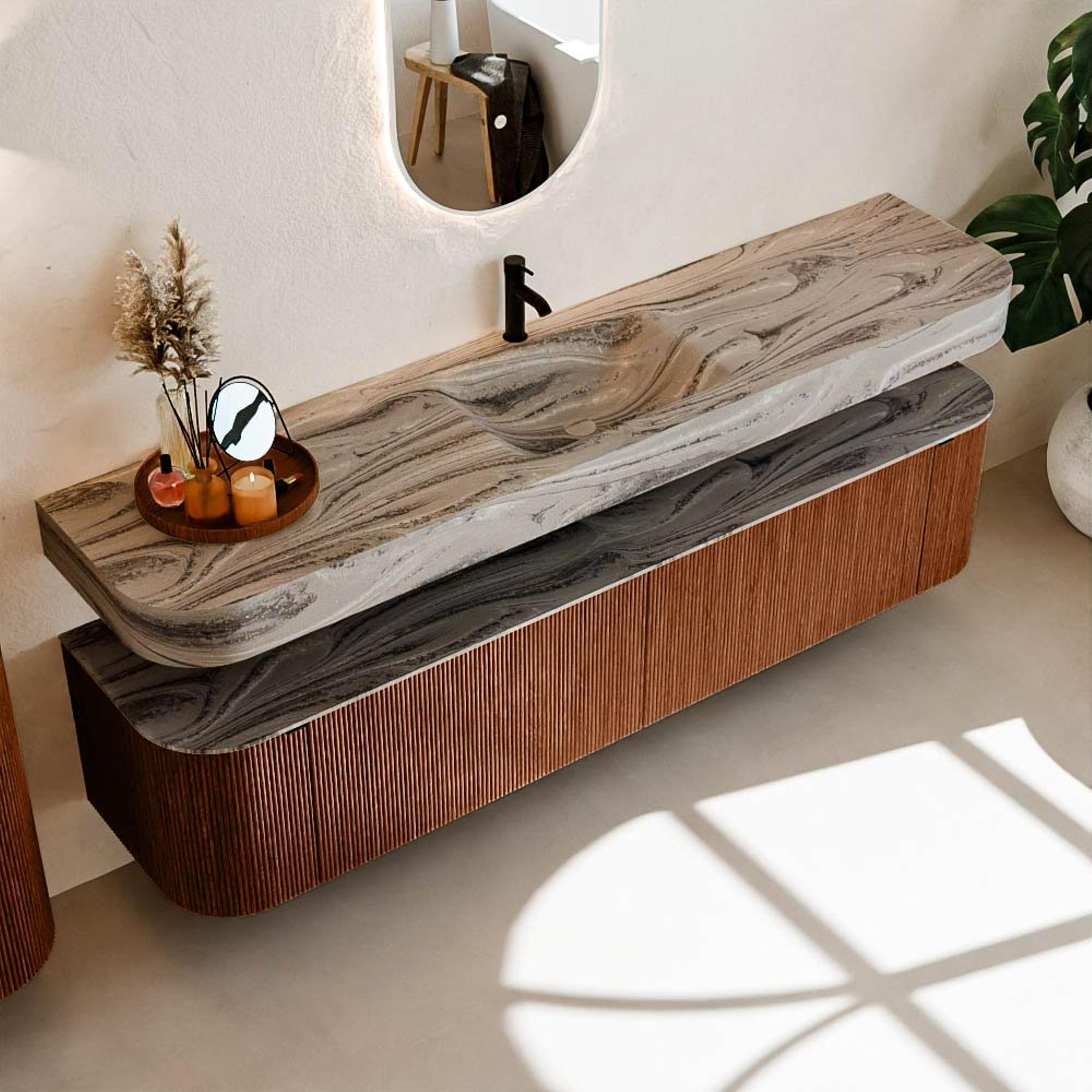 Meuble de salle de bains THOR-DLUX : Lignes organiques & Artisanat fonctionnel.