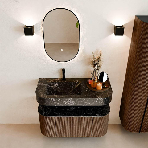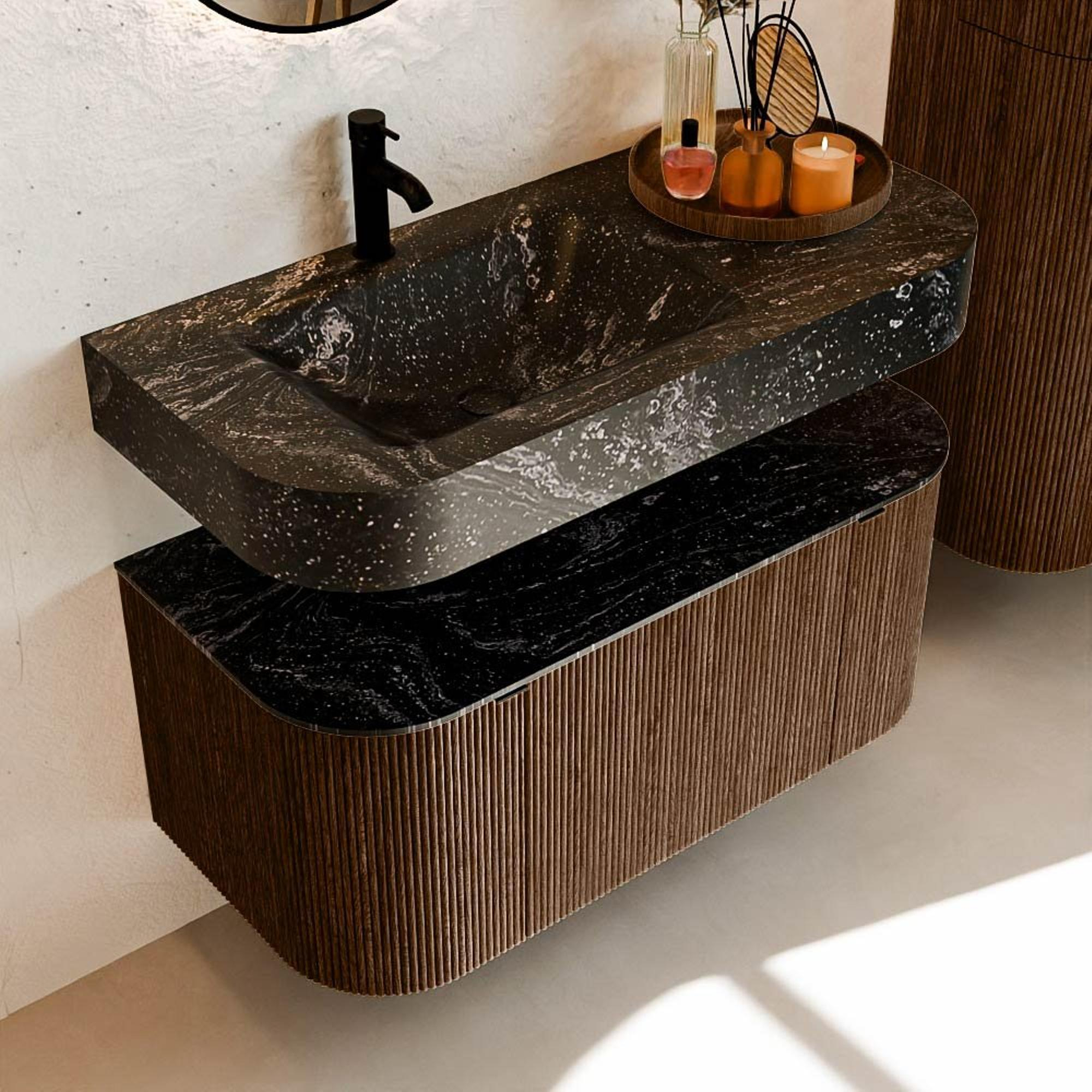 MONDIAZ THOR-DLUX Meuble de salle de bains - 100cm - arrondi gauche + droite - couleur Walnut - 1 tiroir et 2 portes - Vasque suspendue CLOUD gauche 1 trou de robinet couleur Lava