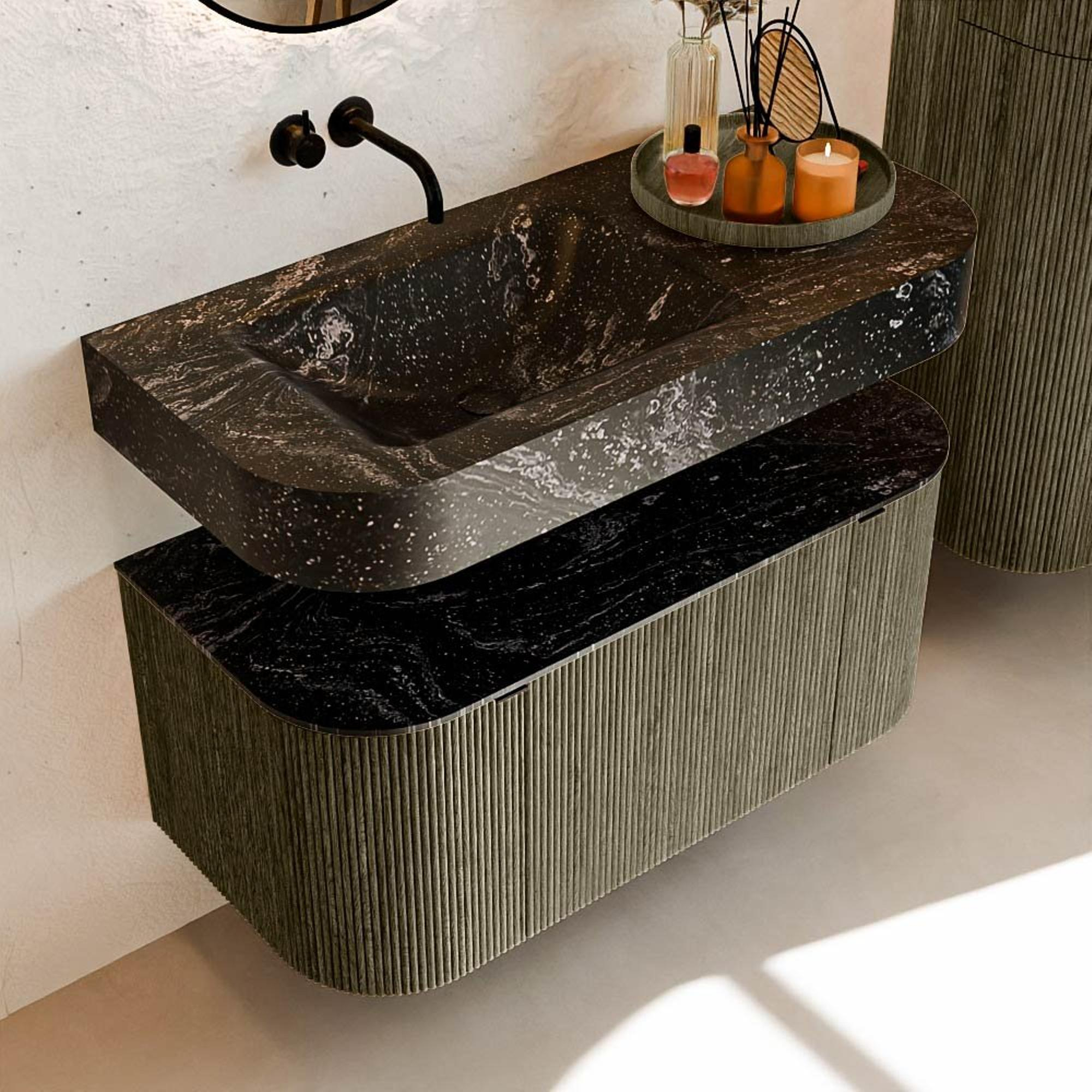 MONDIAZ THOR-DLUX Meuble de salle de bains - 100cm - arrondi gauche + droite - couleur Shadow - 1 tiroir et 2 portes - Vasque suspendue CLOUD Gauche sans trou de robinet - couleur Lava