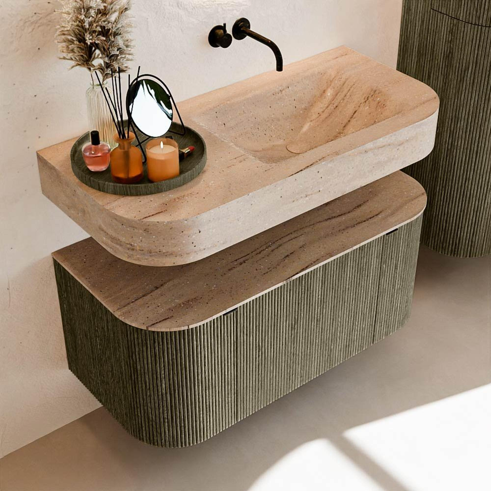 Meuble de salle de bains THOR-DLUX : Lignes organiques & Artisanat fonctionnel.