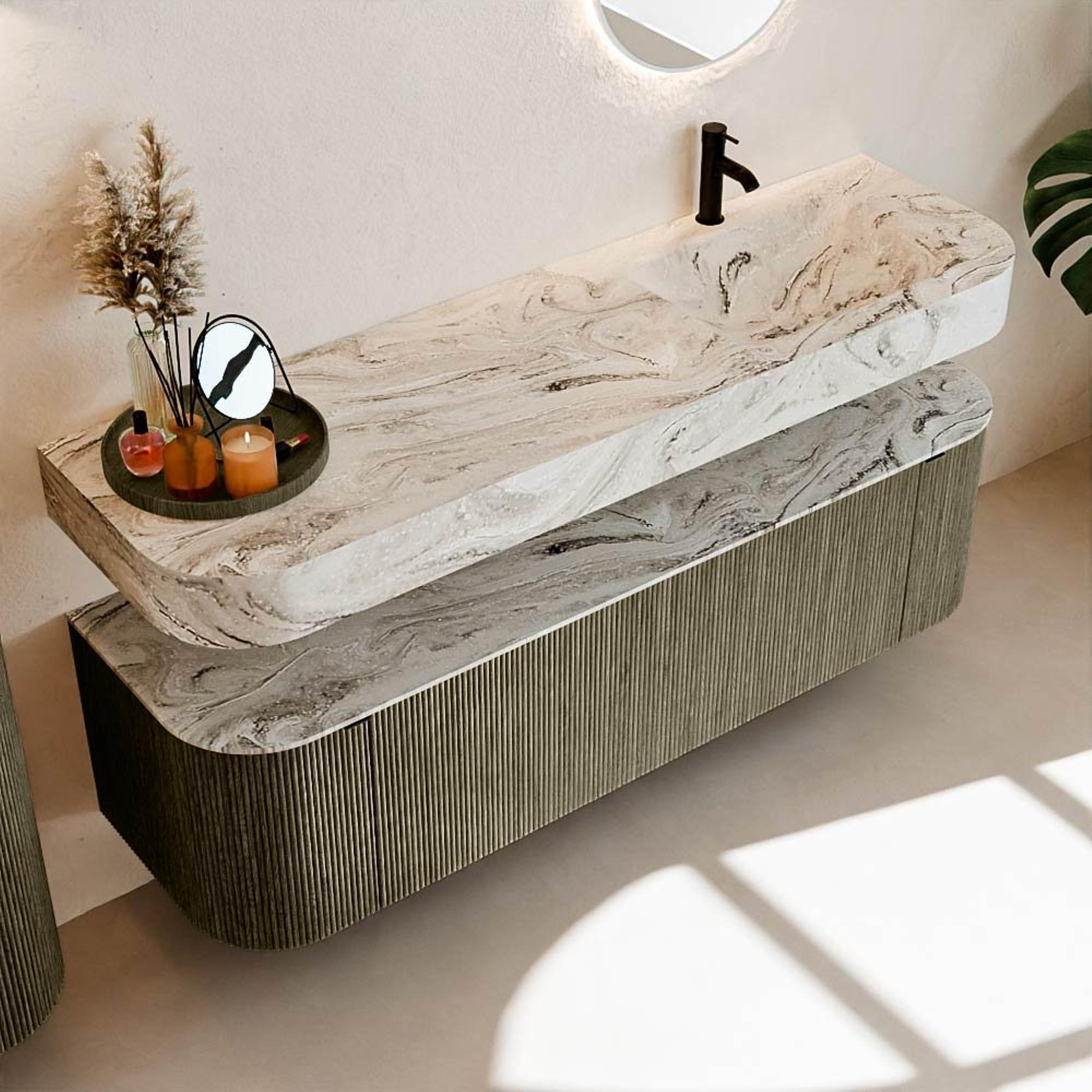Meuble de salle de bains THOR-DLUX : Lignes organiques & Savoir-faire fonctionnel.