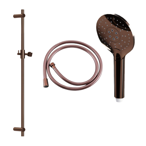 FugaFlow Eccelente Ensemble barre de glissement avec douchette ronde, flexible de douche lisse Cuivre brossé PVD (Cuivre)